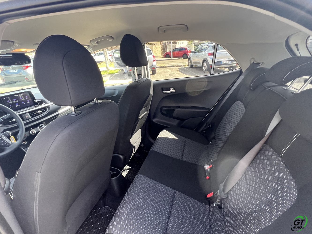 L’idée de conserver les commandes physiques pour la climatisation me séduit toujours c’est le cas dans notre Kia Picanto. L’espace dans l'habitacle me surprend également. L'empattement généreux 2M40 offre quelques centimètres bienvenus très utiles pour les jambes et la tête de ceux qui voyagent à l'arrière. Mais si quatre personnes peuvent voyager confortablement, cinq personnes risquent d'être à l'étroit. La capacité de chargement est également bonne, avec une configuration standard de 255 litres. Pas mal quand on sait que la Fiat Panda, plus longue de quelques centimètres que la Picanto, s'arrête à 225 litres.