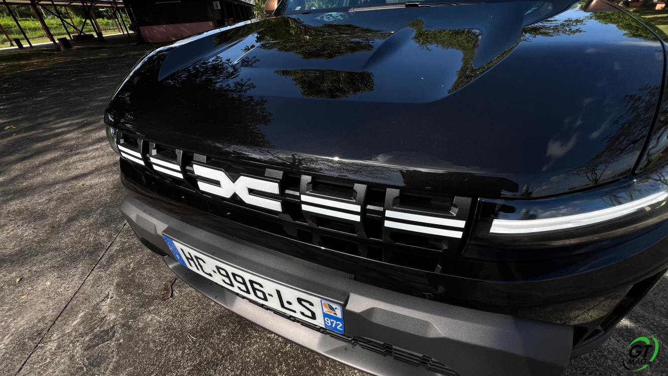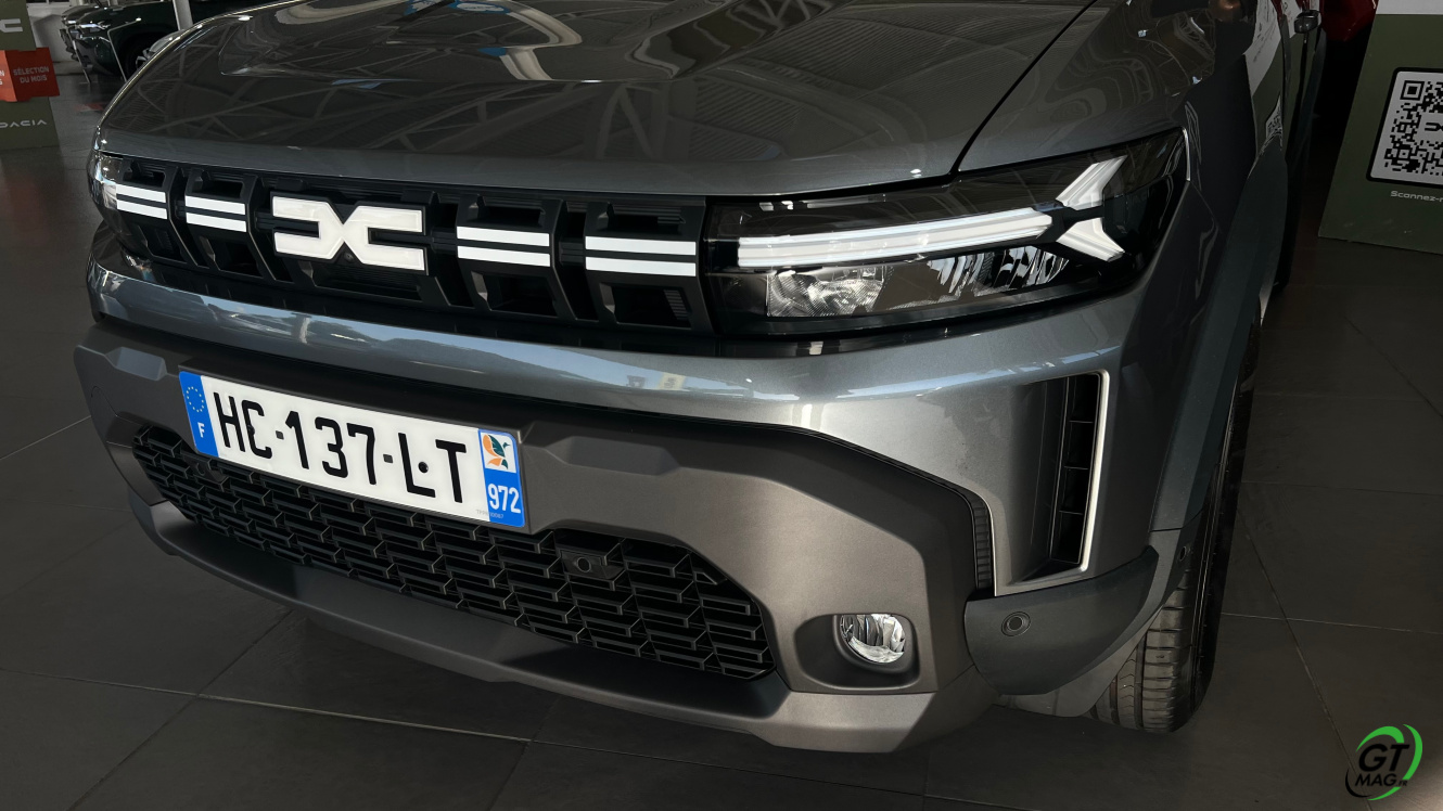 Le Dacia Duster est taillé pour nos îles et la configuration de nos trajets professionnels ou de loisir… Il lui faut d’ailleurs un marche pied car regardez sa garde au sol est hors normes jusqu'à 217 mm, un angle d'attaque jusqu'à 31° pour escalader les pentes en transmission 4x4, et d’entrée de jeu le Dacia Duster affiche d'excellentes capacités de franchissements. Justement côté look comme un vrai baroudeur stylé, je remarque déjà sa calandre placée très haute qui donne un résultat visuel musclé et un nez d’aventurier sincère…  La signature lumineuse en Y vient contribuer à son look de quasi 4x4 américain… On retrouvera ce « Y » vous le verrez également à l’intérieur du Dacia Duster sur les ouïes d’aération et les portières, notamment. Les feux arrière en formes de demi-losanges le rendent très reconnaissable et finissent l’aspect costaud du modèle…