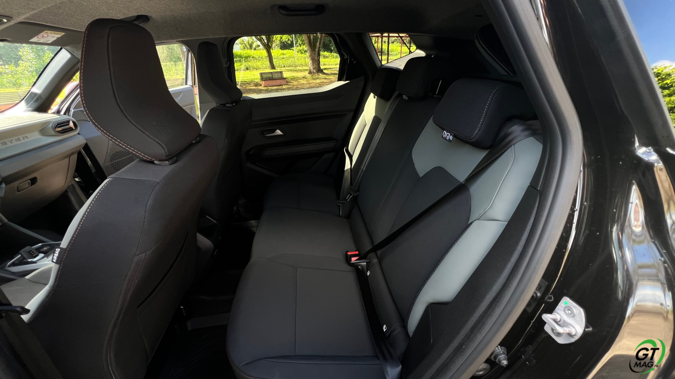 Certes, les plastiques et les revêtements utilisent toujours principalement des plastiques durs mais, mais il faut reconnaître que l’assemblage et le rendu est visuellement réussi… Cela sent la solidité dans le temps... Pas de cuir à bord du Duster, mais des sièges en similicuir, facilement lavable, offrent un confort que je trouve supérieur au segment. À l’arrière, l’espace est généreux pour deux adultes même de grands gabarits, le dossier de la banquette est bien dessiné et confortable, y compris pour la place centrale et la hauteur sous pavillon est bien pensée. La banquette n’est pas coulissante dommage et propose de se rabattre en 60/40. L’équipement s’est considérablement enrichi, entre autres de tous les équipements de sécurité et d’aides à la conduite, et moyennant 3 Packs (Pack Hiver 2, Pack City et Pack Media Nav Live), proposés à des prix démocratiques, vous disposerez d’un Duster dont les équipements, tels que le frein de parking automatique, la carte mains libre, le volant chauffant, la climatisation automatique ou la caméra 360°, pourront se comparer avec ceux de toutes les concurrentes potentielles et même avec ceux de certaines Premium. Signalons également l’astucieuse apparition du système ‘YouClip’, une série de supports permettant de fixer des d’objets tels que porte-tablette, porte-smartphone, sacs à mains…