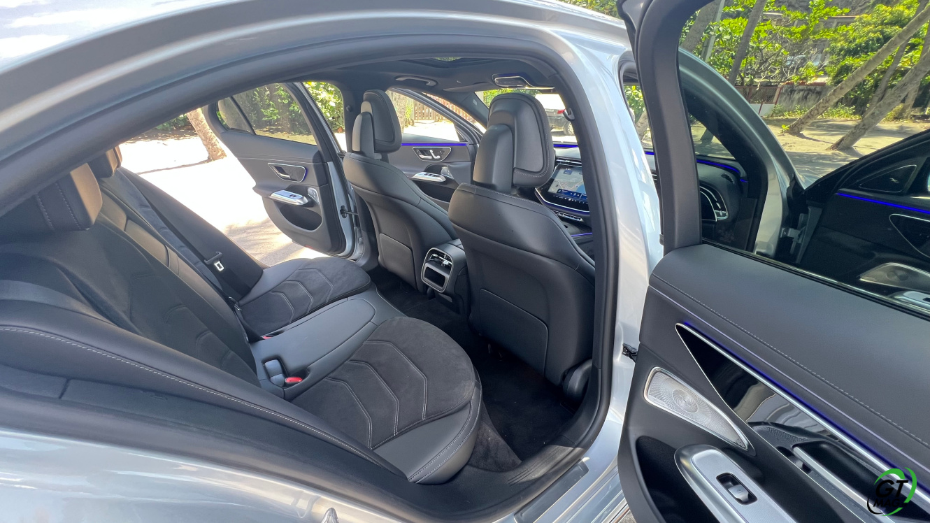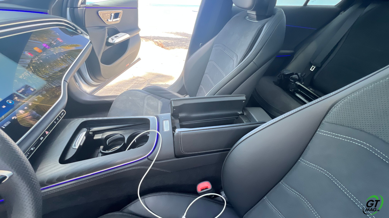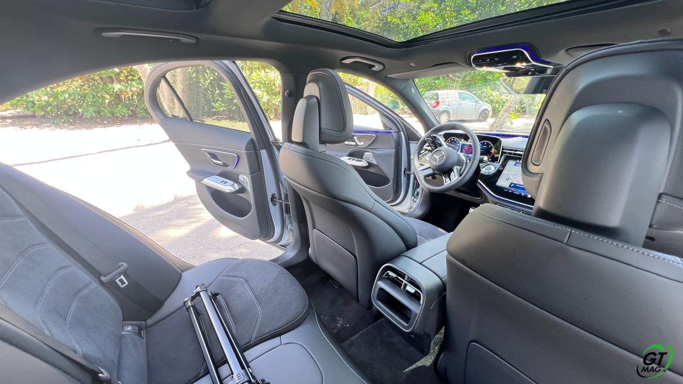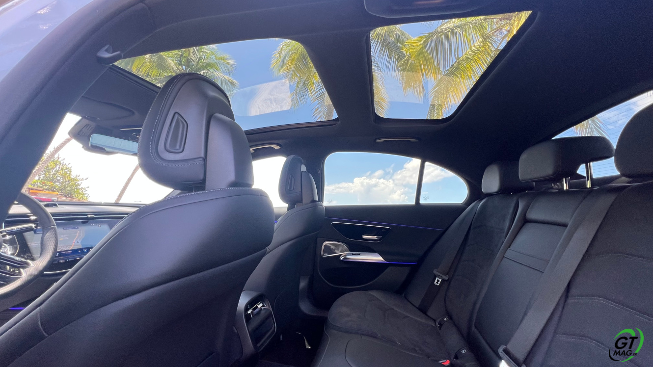 Avec son empattement de 2.94 m, la Mercedes Classe E 2024 offre une bonne place pour les passagers arrière. Les sièges sont très confortables sur les place gauche et droite, alors que la place du milieu sera à réserver aux petits trajets. Pour une fois, les passagers ne sont pas relégués en seconde division : c’est aussi bien fini qu’à l’avant ! On retrouve les même petites attentions et surtout, les même matériaux utilisés. Pour occuper les passagers, on retrouve des lampes de lecture et deux ports USB. Avec espace et luminosité, voyager à l’arrière n’est plus un soucis. En véhicule assez apprécié des commerciaux, ces derniers n’ont pas été oubliés. On retrouve par exemple 4 crochets pour les cintres des costumes ! Enfin, le coffre de la berline est très profond et bien large et offre 540 L de chargement !