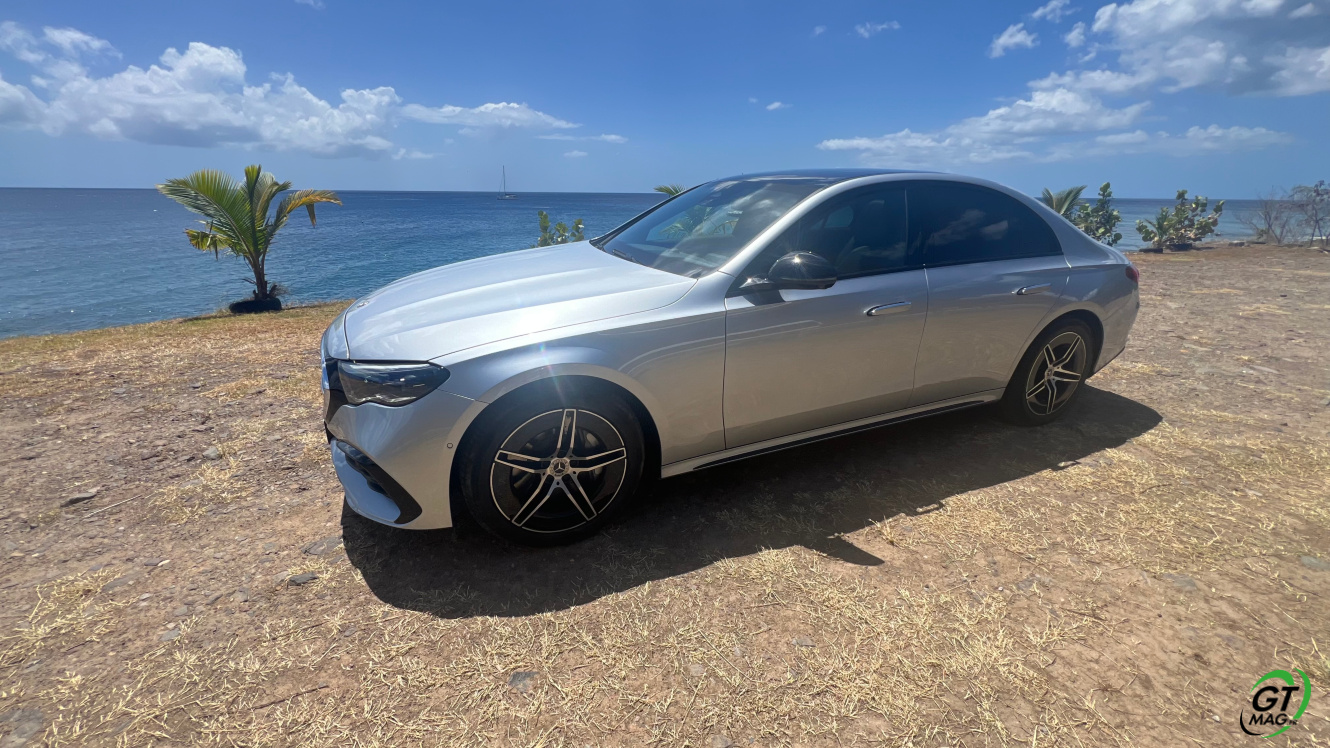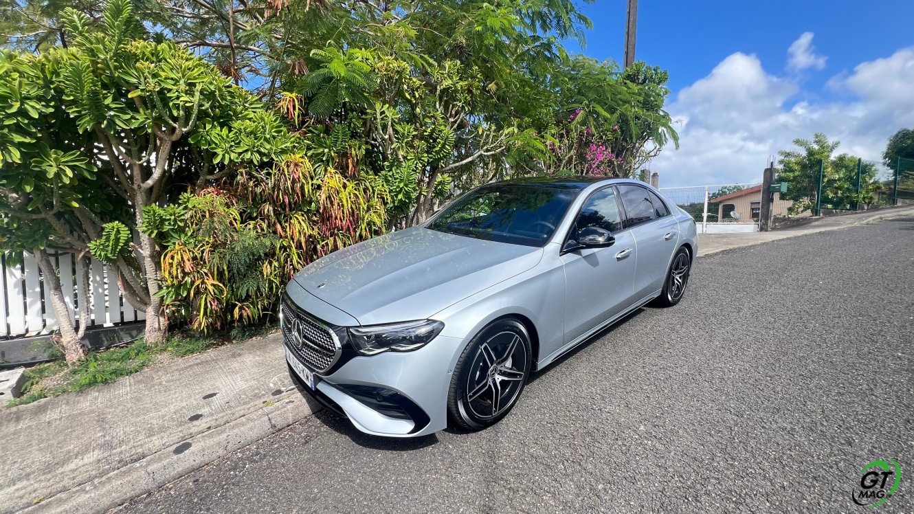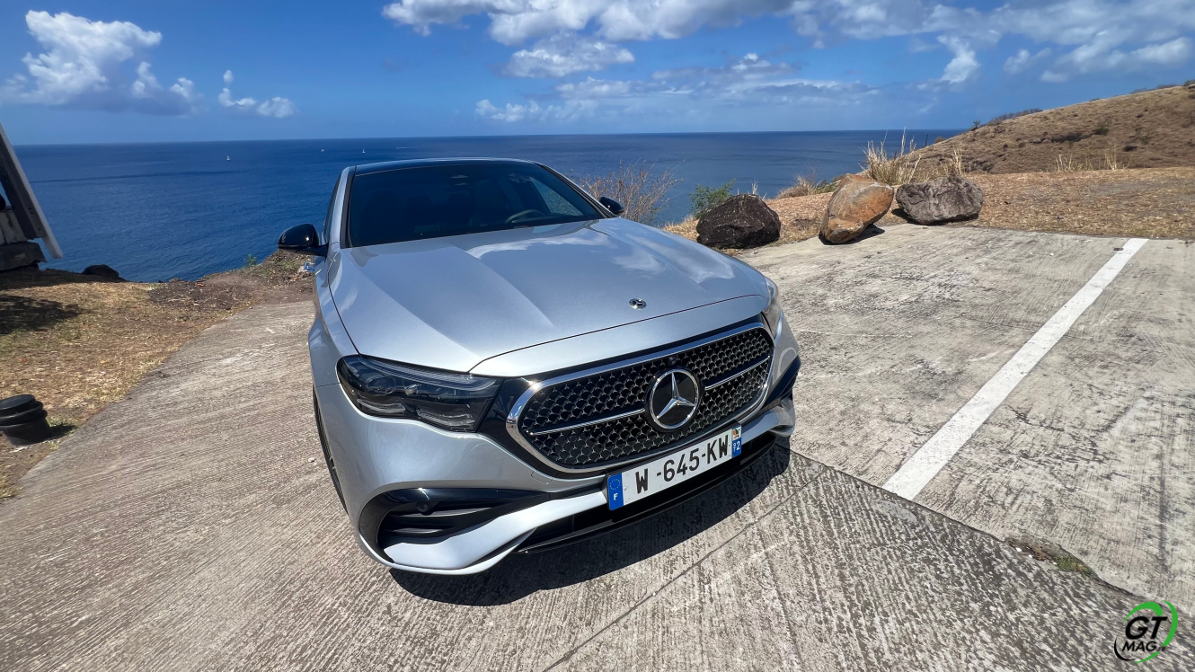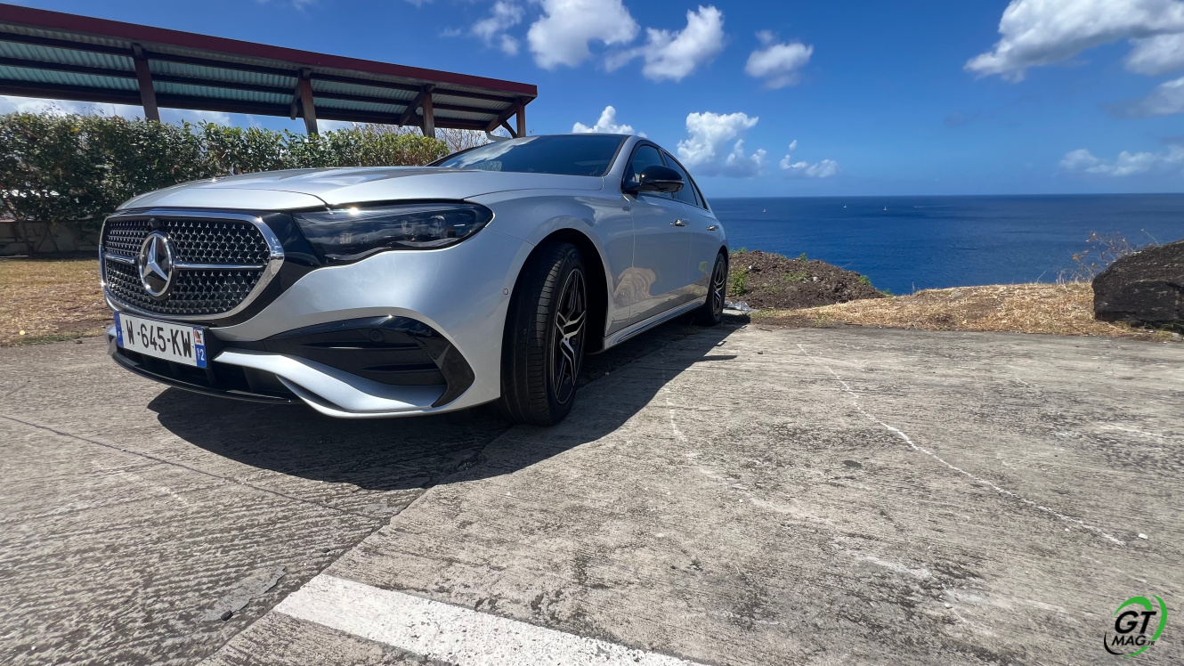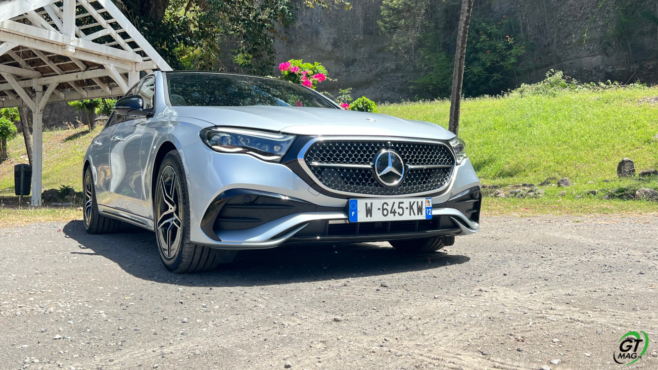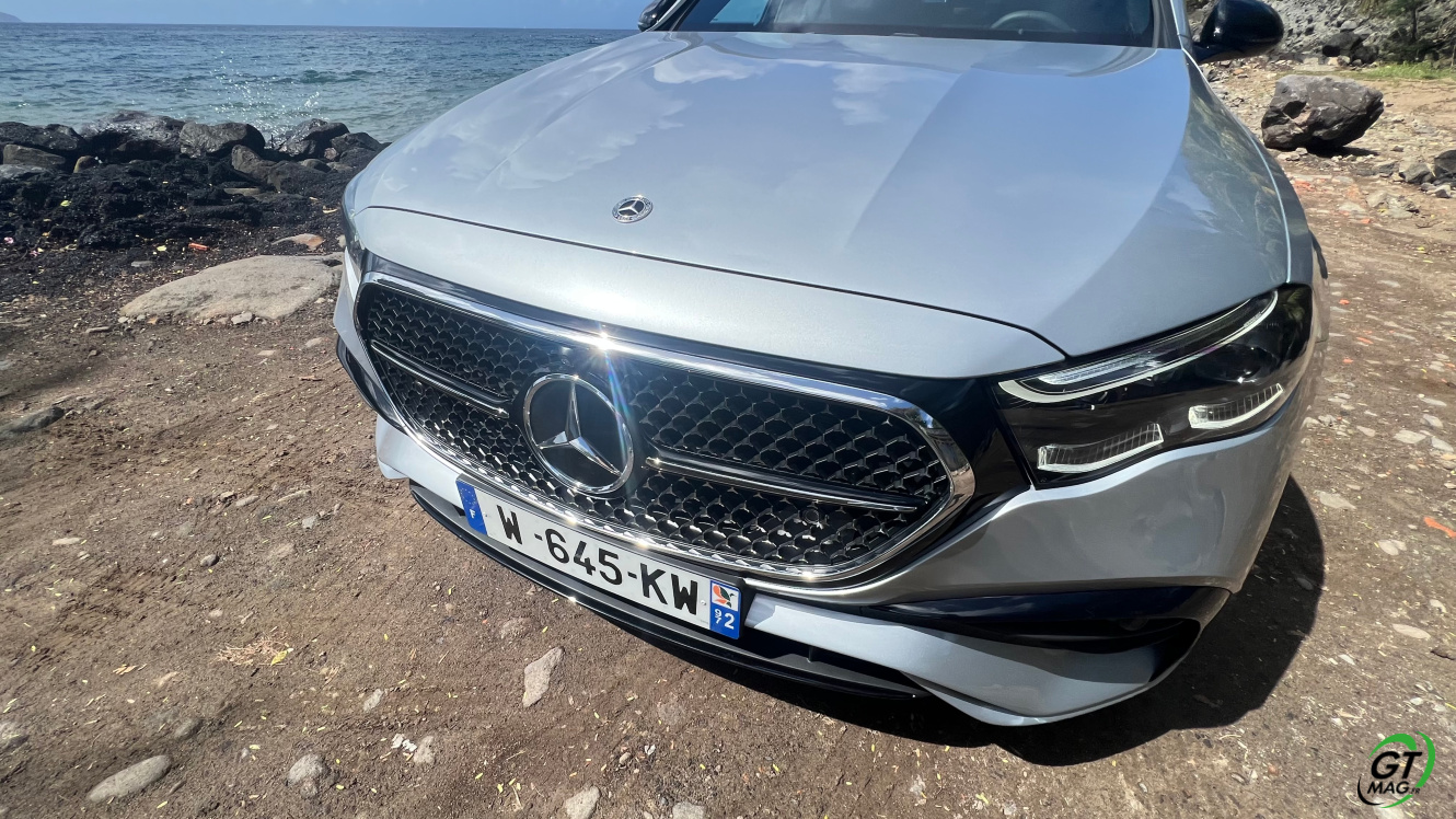 Mercedes a conservé une offre essence comme Diesel, si ce n’est que cette fois, 100% des blocs sont électrifiés. Il faut quand même se faire une raison en acceptant la généralisation des 4 cylindres désormais. A une exception près quand même puisque la 450d 4MATIC, qui arrivera un peu plus tard sur le marché, sera animée d’un 6 cylindres en ligne micro hybridé. Autrement, on démarre avec la 200, 4 cylindres essence de 204 ch, puis la Mercedes classe E 220d Diesel donc de 197 ch 440 Nm notre essai en Martinique ou la 220d 4MATIC qui motrice les 4 roues. Ces moteurs sont tous micros hybridés avec 23 ch d’apport électrique sous certaines circonstances… Le bloc spécialement silencieux de 4 cylindres fait merveille sur nos routes avec une consommation aux alentours des 5,7 l5.8l/100 km… .