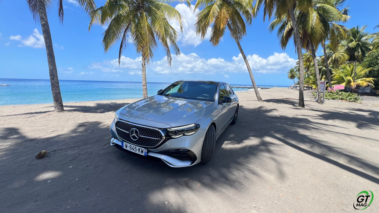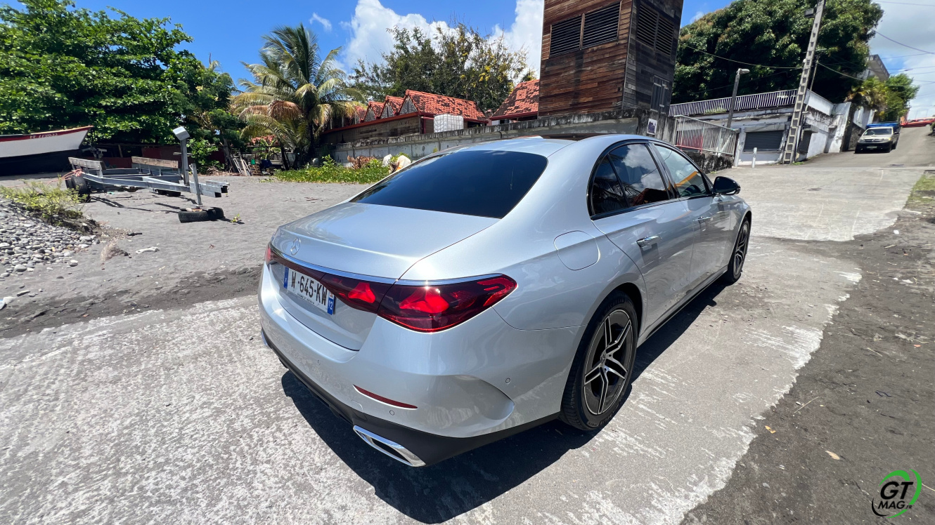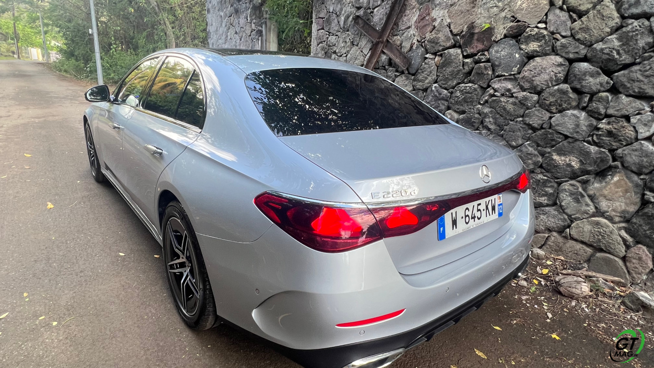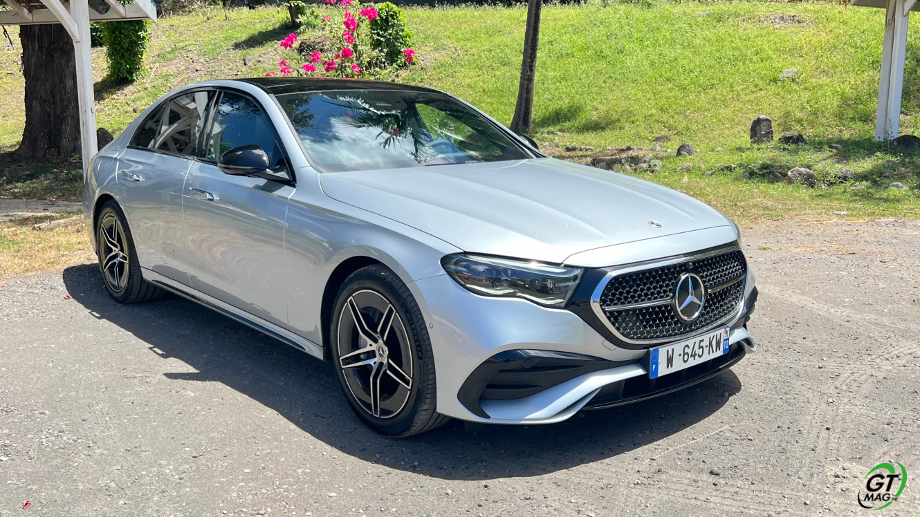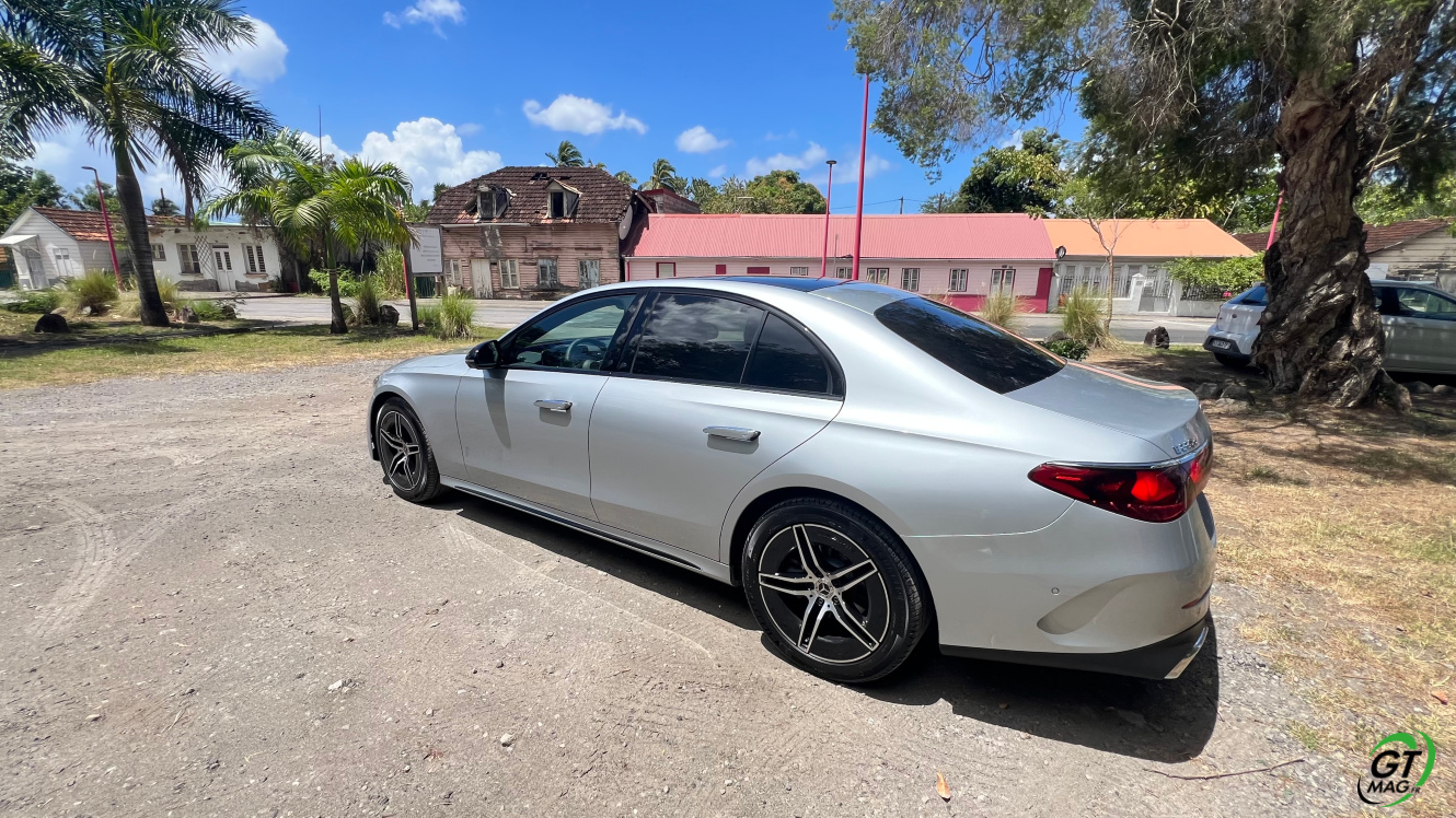 Mercedes a conservé une offre essence comme Diesel, si ce n’est que cette fois, 100% des blocs sont électrifiés. Il faut quand même se faire une raison en acceptant la généralisation des 4 cylindres désormais. A une exception près quand même puisque la 450d 4MATIC, qui arrivera un peu plus tard sur le marché, sera animée d’un 6 cylindres en ligne micro hybridé. Autrement, on démarre avec la 200, 4 cylindres essence de 204 ch, puis la Mercedes classe E 220d Diesel donc de 197 ch 440 Nm notre essai en Martinique ou la 220d 4MATIC qui motrice les 4 roues. Ces moteurs sont tous micros hybridés avec 23 ch d’apport électrique sous certaines circonstances… Le bloc spécialement silencieux de 4 cylindres fait merveille sur nos routes avec une consommation aux alentours des 5,7 l5.8l/100 km… .