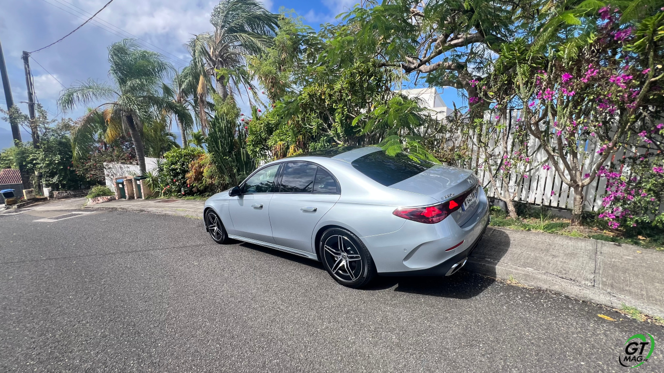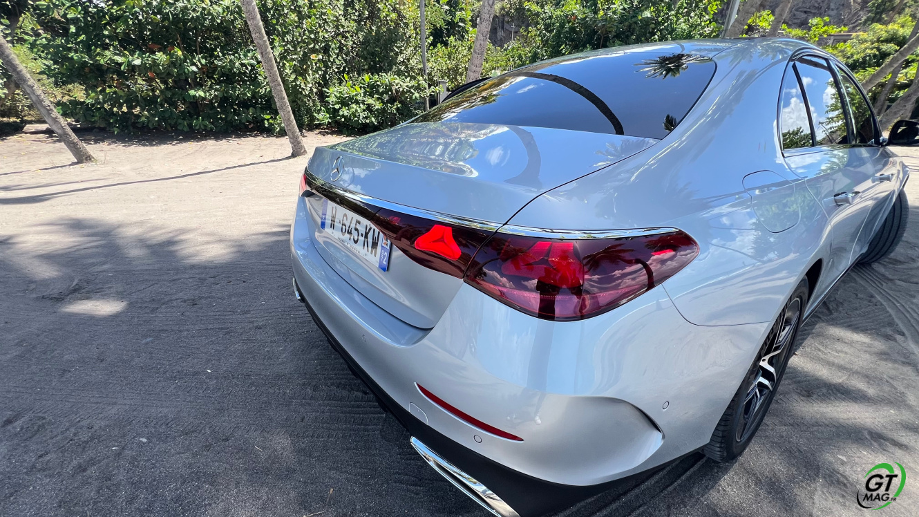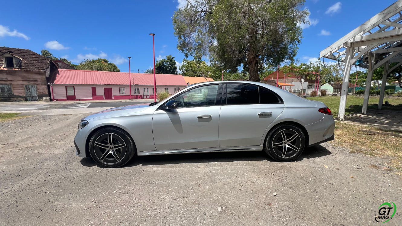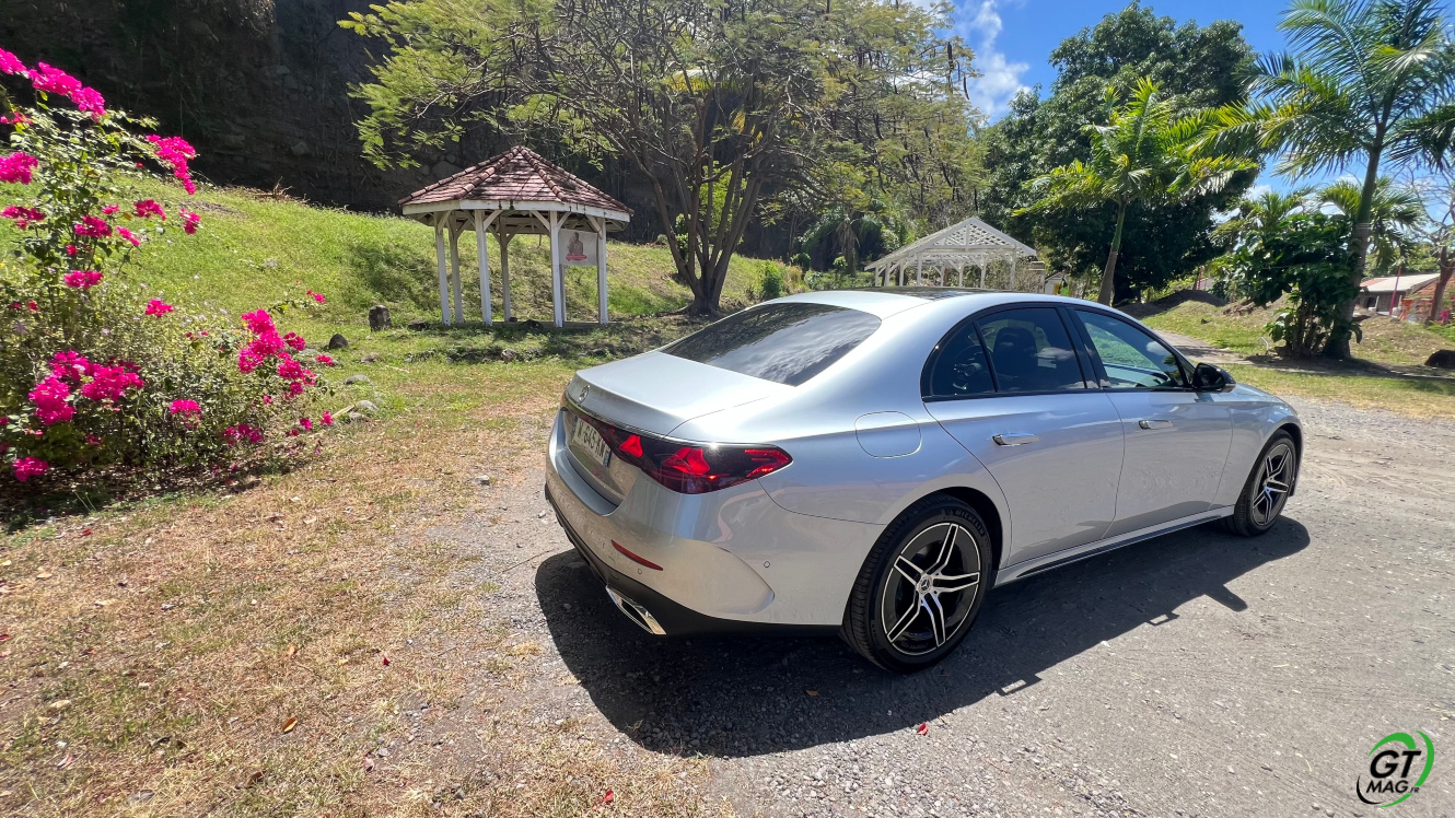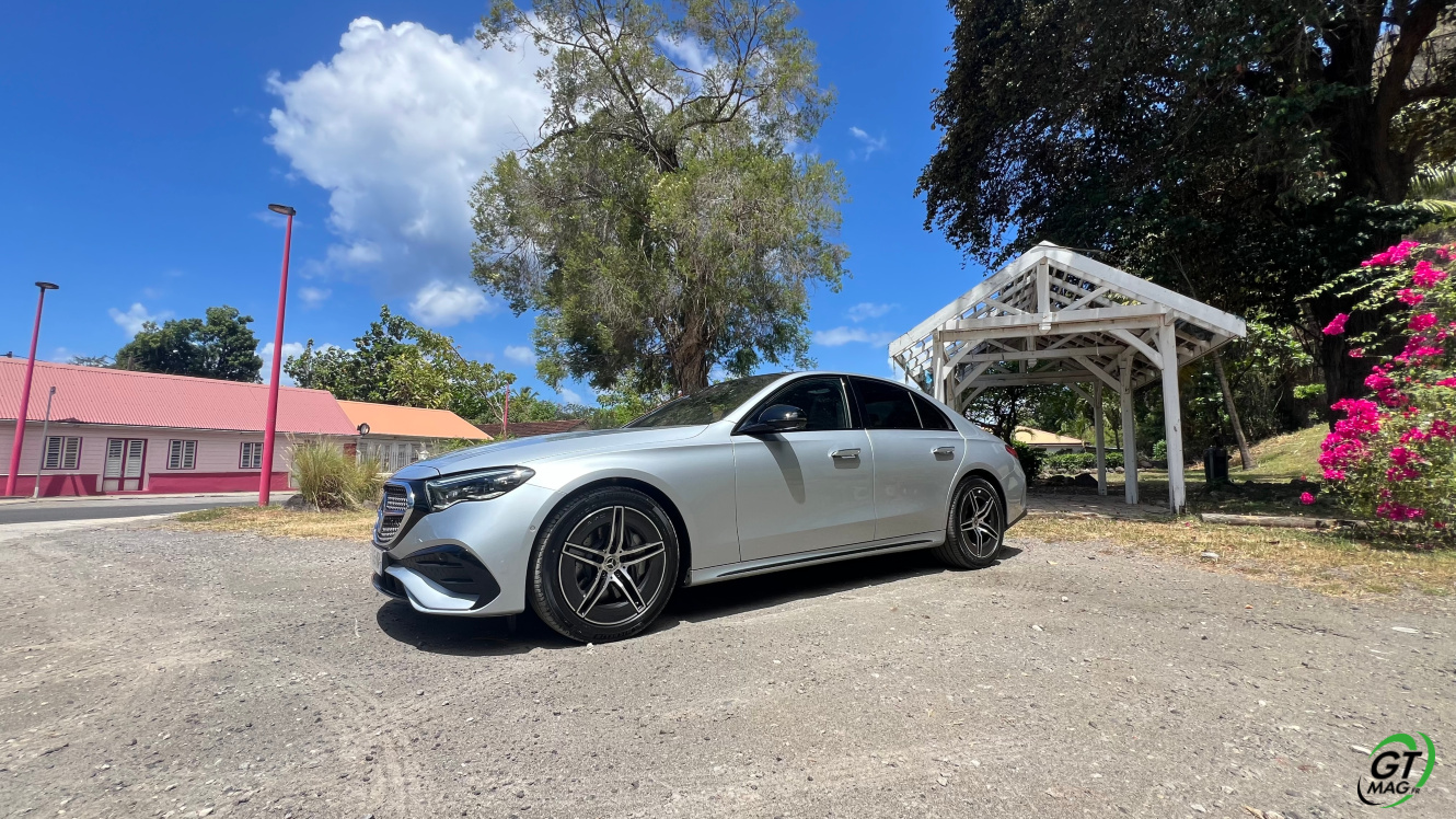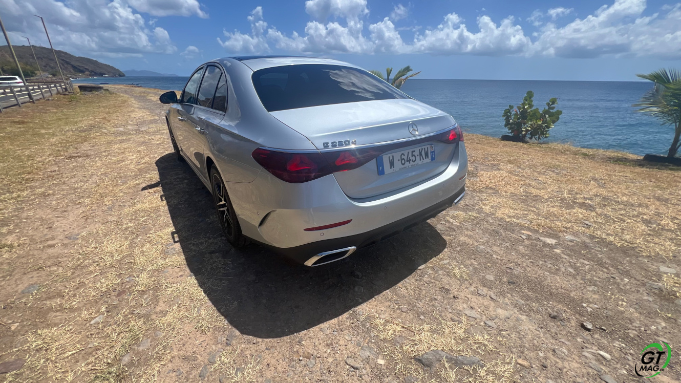 Mercedes a conservé une offre essence comme Diesel, si ce n’est que cette fois, 100% des blocs sont électrifiés. Il faut quand même se faire une raison en acceptant la généralisation des 4 cylindres désormais. A une exception près quand même puisque la 450d 4MATIC, qui arrivera un peu plus tard sur le marché, sera animée d’un 6 cylindres en ligne micro hybridé. Autrement, on démarre avec la 200, 4 cylindres essence de 204 ch, puis la Mercedes classe E 220d Diesel donc de 197 ch 440 Nm notre essai en Martinique ou la 220d 4MATIC qui motrice les 4 roues. Ces moteurs sont tous micros hybridés avec 23 ch d’apport électrique sous certaines circonstances… Le bloc spécialement silencieux de 4 cylindres fait merveille sur nos routes avec une consommation aux alentours des 5,7 l5.8l/100 km… .