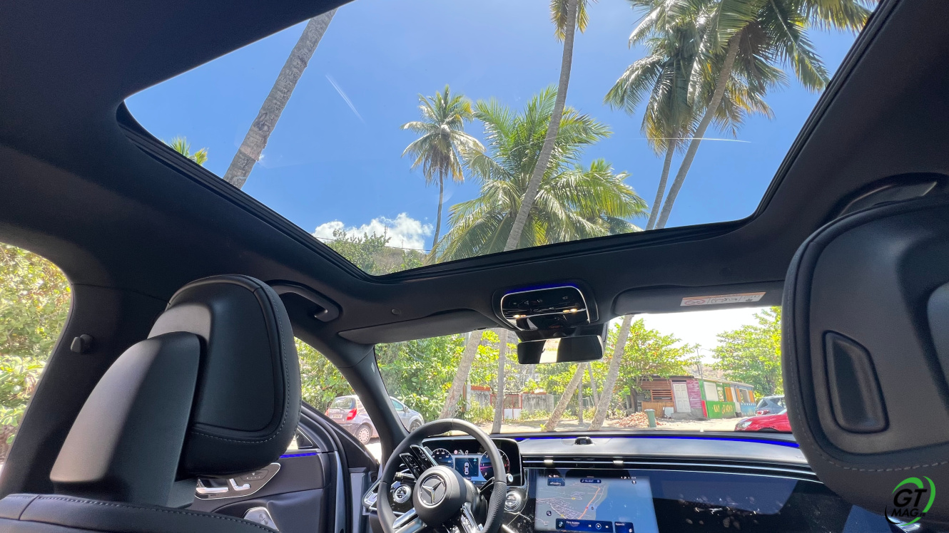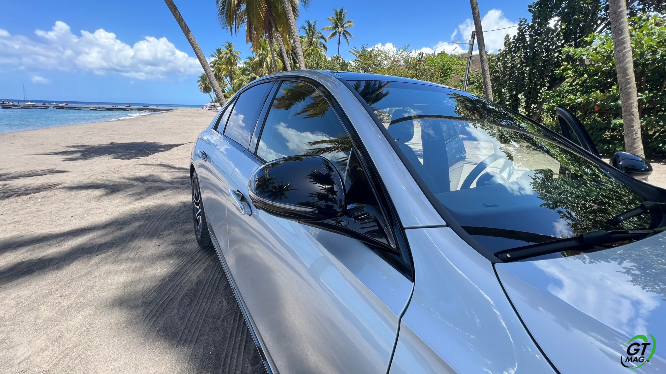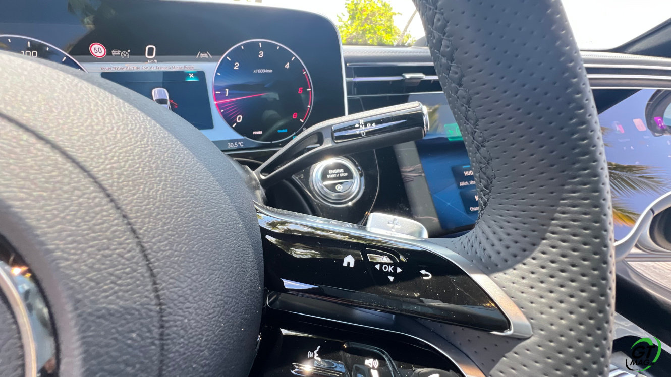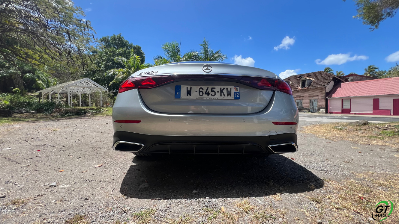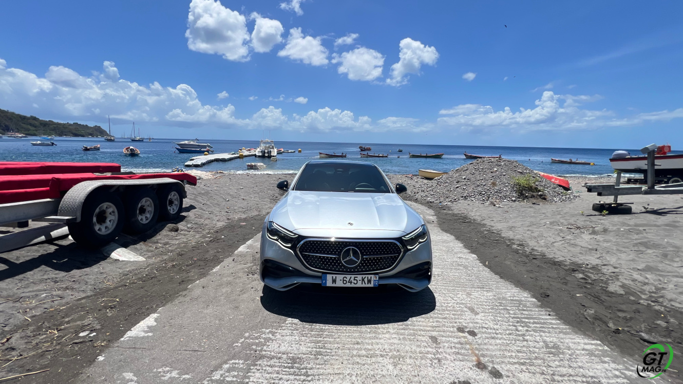 Mercedes a conservé une offre essence comme Diesel, si ce n’est que cette fois, 100% des blocs sont électrifiés. Il faut quand même se faire une raison en acceptant la généralisation des 4 cylindres désormais. A une exception près quand même puisque la 450d 4MATIC, qui arrivera un peu plus tard sur le marché, sera animée d’un 6 cylindres en ligne micro hybridé. Autrement, on démarre avec la 200, 4 cylindres essence de 204 ch, puis la Mercedes classe E 220d Diesel donc de 197 ch 440 Nm notre essai en Martinique ou la 220d 4MATIC qui motrice les 4 roues. Ces moteurs sont tous micros hybridés avec 23 ch d’apport électrique sous certaines circonstances… Le bloc spécialement silencieux de 4 cylindres fait merveille sur nos routes avec une consommation aux alentours des 5,7 l5.8l/100 km… .