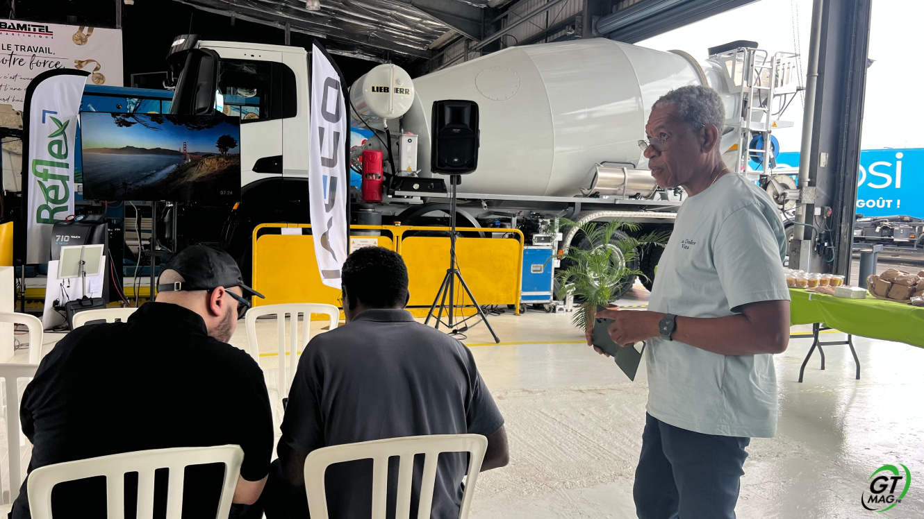 Christophe MASSIAS à gauche Responsable des formations SCANIA au micro de GTmag.fr ci-dessous :