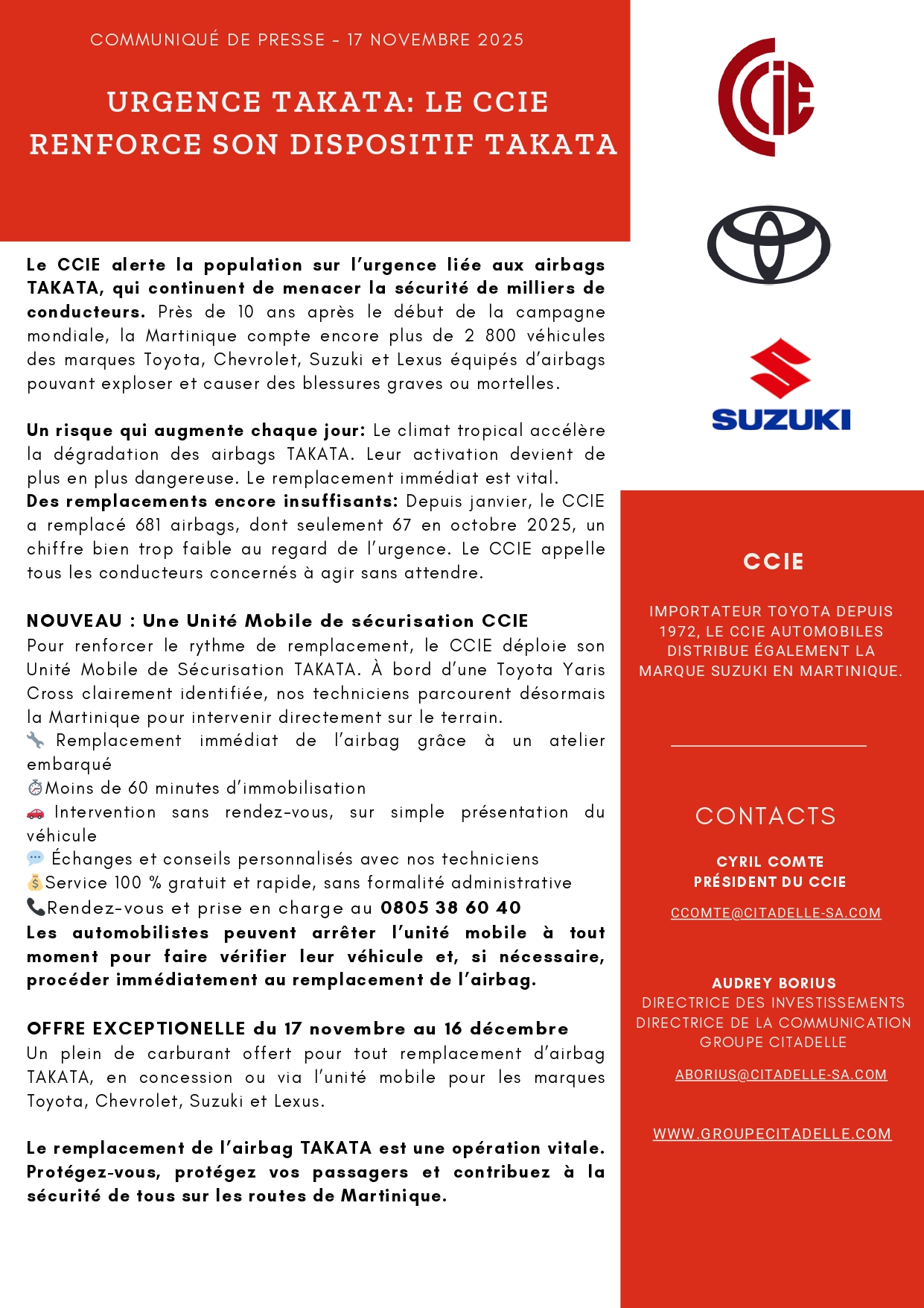 Sébastien PANHELEUX Directeur du service après-vente Toyota et Suzuki ! FAITES CHANGER VOS AIRBAGS TAKATA