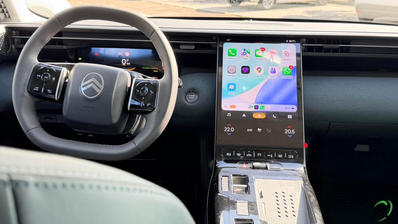 Le nouveau Citroën C5 Aircross reçoit le plus grand écran central tactile HD jamais proposé au sein de Stellantis. Avec son design spectaculaire tout en légèreté et en verticalité, il flotte véritablement devant la planche de bord, puis descend comme une cascade dans un seul mouvement pour se connecter de façon fluide à la console centrale. Le nouveau Citroën C5 Aircross reçoit la dernière génération des systèmes d’info-divertissement Citroën intégrant une navigation 3D connectée et un système audio complet. L’intégration des smartphones est totalement fluide grâce à une connexion sans fil, compatible Apple CarPlay et Android Auto. Deux smartphones peuvent être connectés simultanément par Bluetooth. Le système de reconnaissance vocale « Hello Citroën » est disponible sur le C5 Aircross… Enfin tous les nouveaux C5 Aircross bénéficient d’un combiné d’instruments digital de 10 pouces, personnalisable et idéalement positionné. Il est complété selon le niveau par l’Affichage Tête Haute étendu, système d’affichage par projection à travers le pare-brise, en couleur et de grande dimension.