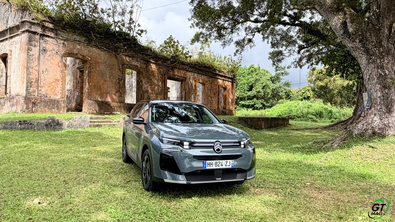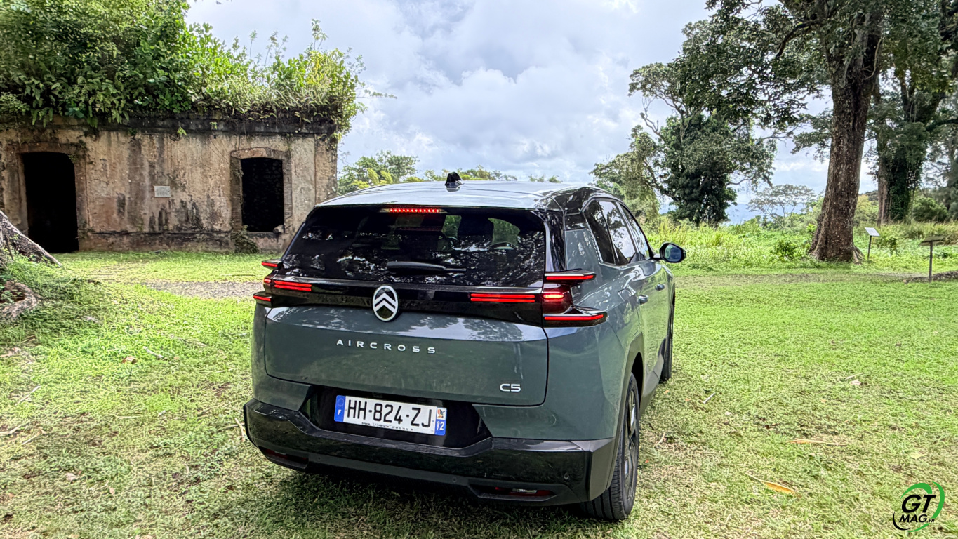 Proposé a son public en octobre 2025, fabriqué à Rennes, la seconde génération de Citroën C5 Aircross s’octroie une pléiade de nouveautés en rejoignant la plate-forme STLA Medium… Cela permet d’introduire dans la gamme C5 Aircross un nouvel ensemble hybride rechargeable de 195 ch cumulés, deux inédites versions électriques de 210 ou 230 ch (en attendant l’ë-C5 Aircross de 325 ch à deux moteurs). Dans cette nouvelle gamme, seul un moteur existait déjà sur le précédent C5 Aircross : le trois-cylindres essence microhybride, maintenant en 145 ch que nous propose à l’essai Citroën Martinique ce matin... Le nouveau Citroën C5 Aircross a considérablement grandi ! Il gagne16 centimètres en longueur, pour atteindre un total de 4,65 mètres en offrant une garde au sol de 20 cm. À titre de comparaison pour sa longueur, cela rend le C5 Aircross 5 centimètres plus longue qu'un Toyota RAV4.