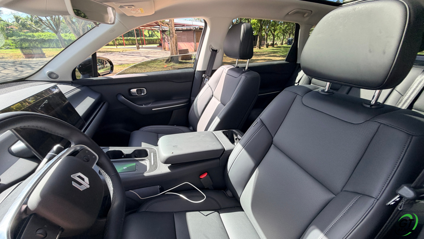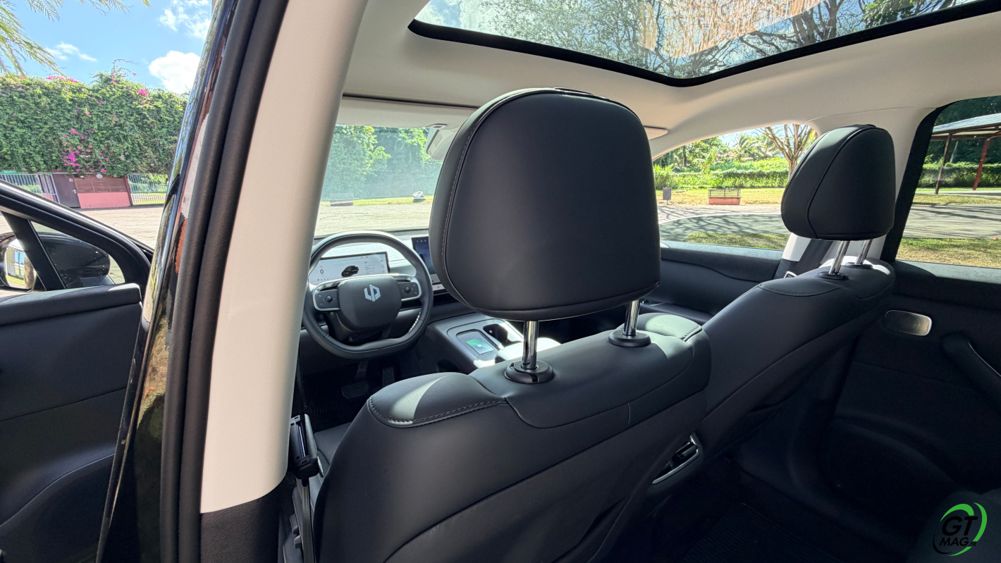 Plutôt réussi, l’habitacle du Leapmotor C10 REEV est une heureuse surprise. Très épuré, le mobilier de bord est constitué de matériaux de qualité correcte, seuls quelques assemblages demeurent perfectibles. Comme chez Tesla, un grand écran central de 14,6 pouces centralise toutes les commandes de la voiture alors que l’instrumentation dispose d’une dalle de 10,25 pouces. L’interface multimédia de la voiture est assez réussie en termes de fluidité et d’accessibilité, mais on peut regretter l’absence de toute compatibilité Apple CarPlay et Android Auto, mais les choses devaient changer courant 2025… Malgré cela Leapmotor a fait du super travaille à l’intérieur de son C10 du moins en termes de matériaux et d’assemblage.