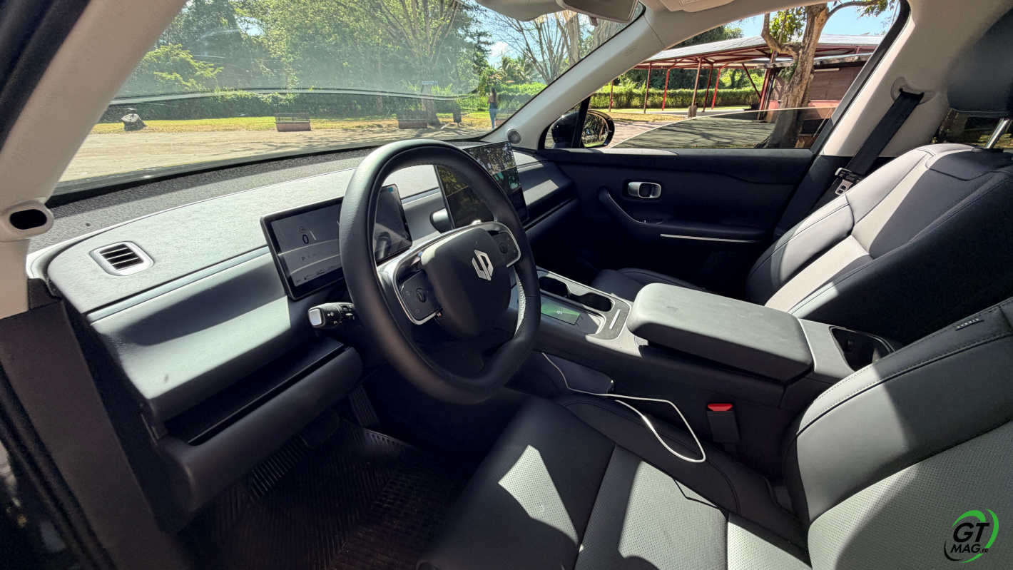 Sur nos routes la sonorisation est vraiment très bien maîtrisée malgré les rappels sonores des aides à la conduite assez intrusifs… La machine thermique est plutôt bien insonorisée avec… Une fois de plus je suis agréablement surpris par la qualité des suspensions du Leapmotor C10 et c’est très honorablement qu’il absorbe les aspérités de nos routes secondaires avec aisance préservant ainsi au passage mes lombaires… Les matériaux de l’habitacle sont à la hauteur et le sentiment de sécurité avec une conduite haute n’est pas un leurre… La douceur de conduite même si la direction est peu réactive, le silence et l’ergonomie du véhicule font du Leapmotor C10 REEV un véhicule fiable et agréable… A vous de l’essayer maintenant et nous écrire pour nous donner votre avis chez Peugeot Martinique…