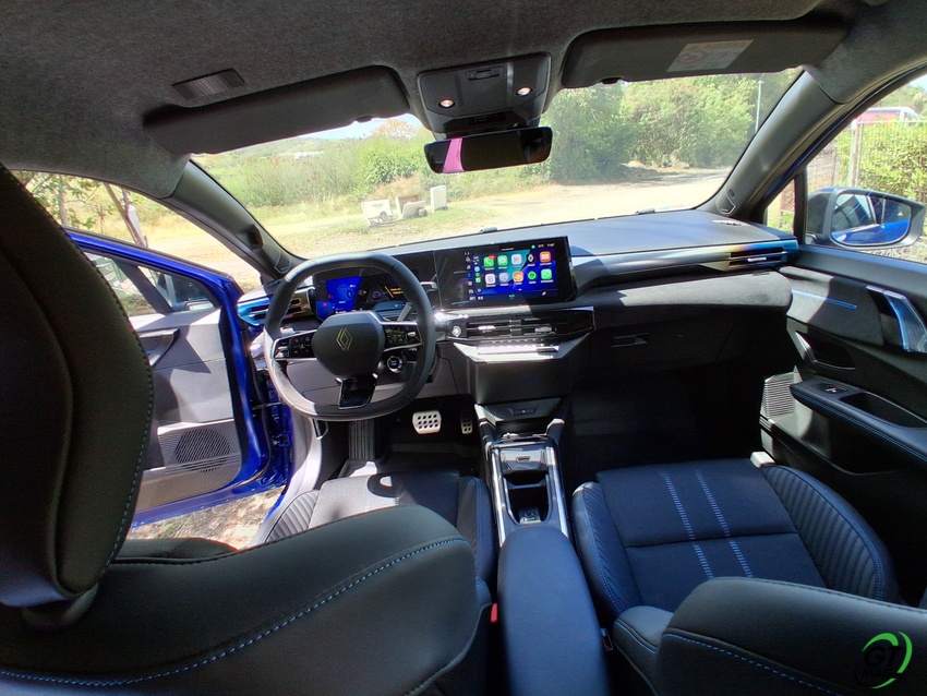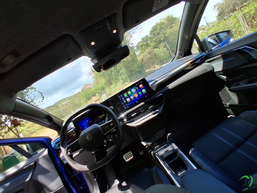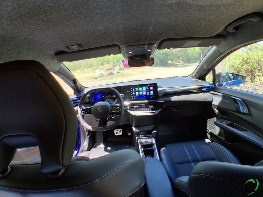 Renault insiste depuis des années sur la qualité perçue. Cette fois, la promesse est tenue. En ouvrant la porte de cette Clio 6 finition Esprit Alpine, on change d’univers. Les matériaux valorisants avec de l’alcantara, des surpiqûres bleues, des inserts métalliques “chauffés” façon silencieux d’échappement de moto, la nouvelle planche de bord horizontale, les sièges enveloppants, franchement tout respire le soin et le sérieux. On sent l’influence de l’univers Alpine, une sportivité subtile, une ambiance premium et une élégance moderne. Technologiquement, le système OpenR Link avec double écran, conçu autour des services Google intégrés est de la partie. Navigation ultra réactive, commandes vocales naturelles, mises à jour à distance, c’est tout simplement l’un des meilleurs systèmes multimédias du marché, toutes catégories confondues. L’habitabilité reste correcte et la Clio n’a jamais prétendu être une grande berline.