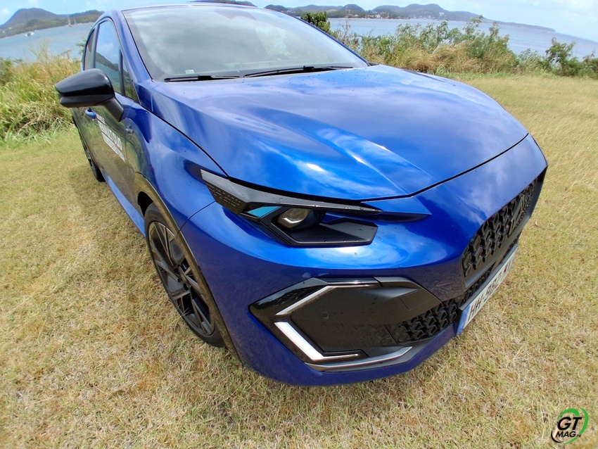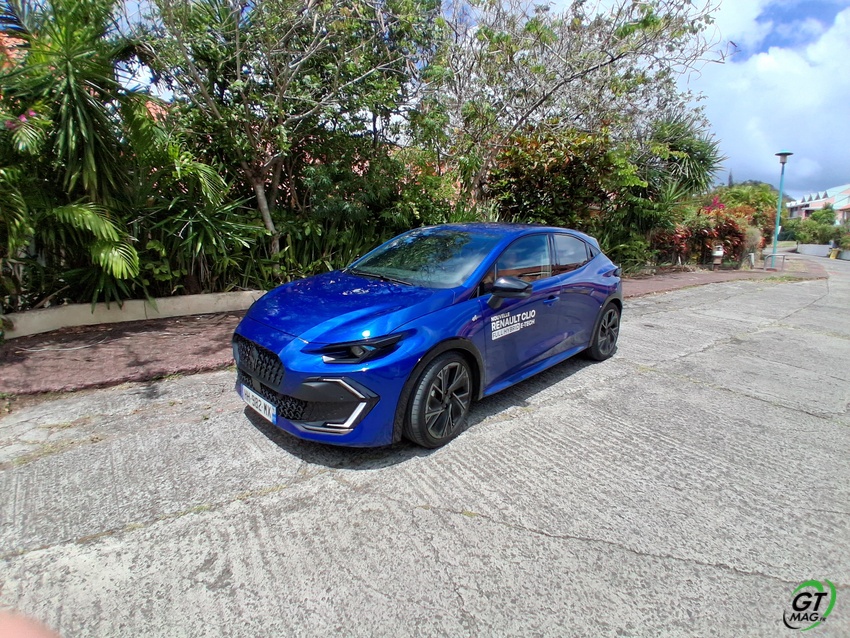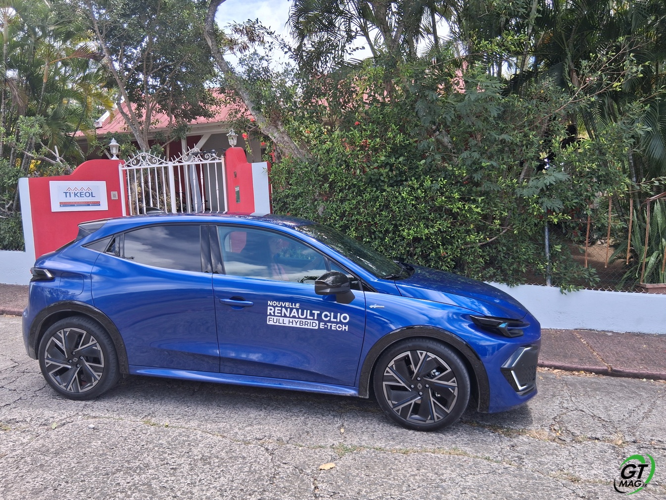Elle vient d’arriver en Martinique et la sixième génération de la Clio se réinvente quasi totalement avec un tout nouveau design ainsi qu’une sérieuse modernisation de son intérieur et de ses équipements avec matériaux soignés jusqu’aux contre-portes… Dessinée sous l’impulsion de Gilles Vidal, cette Clio 6 change donc ses codes esthétiques et adopte des motorisations hybrides toujours plus efficientes. Nous l’avons essayée dans sa déclinaison haut de gamme, finition Esprit Alpine et moteur hybride 160 ch. Le design est et restera, de toute manière, une affaire de goût. Mais c’est incontestablement la face avant qui marque la rupture la plus nette : calandre arrondie et détachée des projecteurs, grille constellée de petits losanges, large prise d’air traversante et DRL en forme de losange scindé inspirés du concept Emblème.