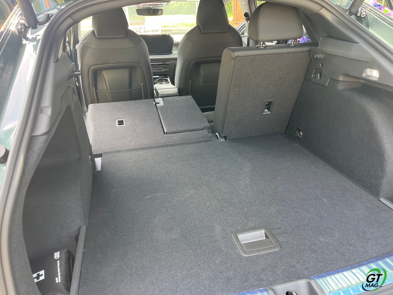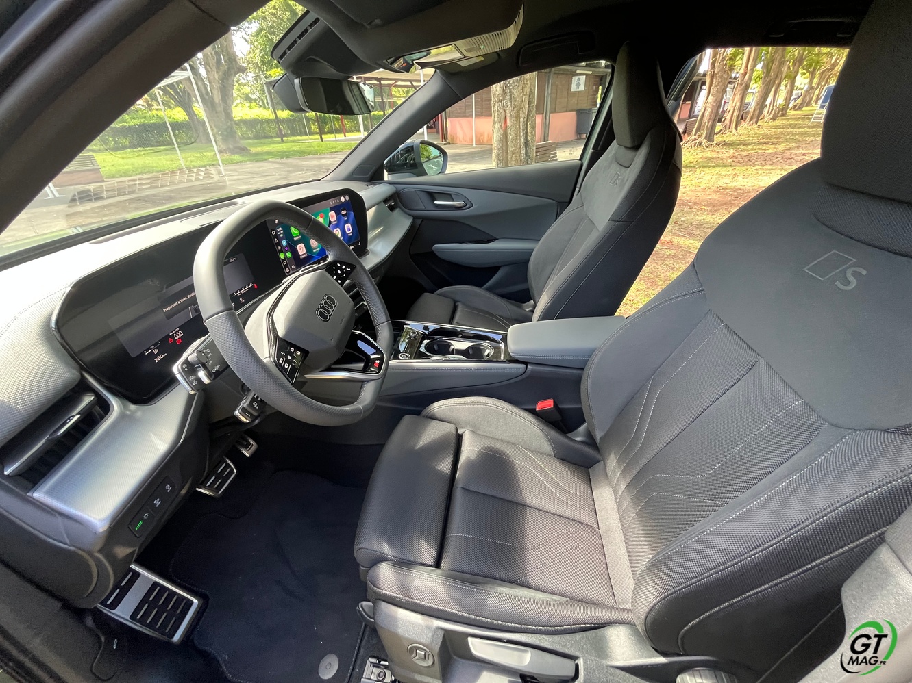 Côtés motorisations je vous précise que le Q3 est plutôt bien servi. En essence, l’offre débute par le 1.5l TFSI de 150 ch, en deux roues motrices. Le 2.0 TFSI de 204 ou 265 ch satisfera les amateurs de performances. Tous deux sont associés à la transmission intégrale Quattro. Le 2.0 TDI reste également disponible sur le Q3 , dans sa déclinaison 150 ch et deux roues motrices c’est notre essai de ce matin. Et bientôt disponible aux Antilles, Audi propose, on l’a vu, une mécanique PHEV e-hybrid composée du1.5 TFSI de 177 ch et d’un moteur électrique de 115 ch, pour une puissance cumulée de 272 ch. Cette motorisation dispose d’une grosse batterie de 25,7 kWh (19,7 kWh nets) qui donne une autonomie théorique de 118 km au Q3 Sportback. L’avantage est que le Q3 peut se brancher sur une borne rapide pour une recharge de maximum 50 kW. Nous l’essayerons d’ailleurs dès son arrivé avec GTMAG.fr… Rappelons que toutes les versions bénéficient de la boîte S tronic à 7 rapports alors que la transmission quattro n’est disponible que sur certaines finitions.