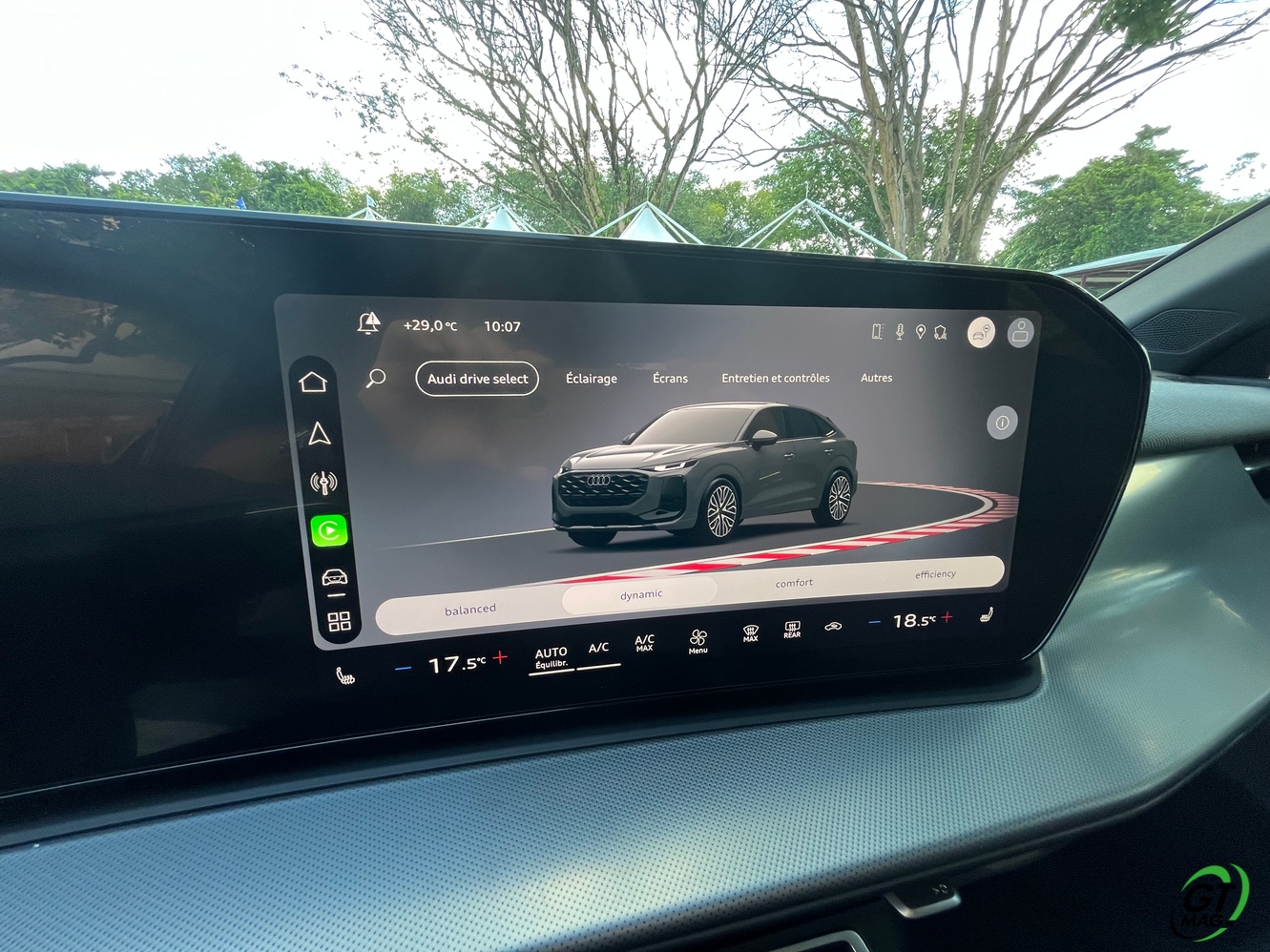 Le système Audi drive select introduit le mode Balanced en remplacement du mode automatique. Ce mode représente l’équilibre optimal entre dynamique de conduite et confort, activé par défaut au démarrage. Les conducteurs peuvent le configurer selon leurs préférences individuelles via le MMI. La suspension de série a été développée pour améliorer l’expérience de conduite. La suspension adaptative optionnelle réagit en continu aux caractéristiques de la route, calculant l’amortissement idéal pour chaque roue en une fraction de seconde. Les amortisseurs à double valve permettent un contrôle séparé des phases de rebond et de compression, optimisant la dynamique tout en préservant le confort. Le châssis parfaitement équilibré propose une conduite sûre et dynamique avec une place pour l’intuitif laissant au conducteur le choix d’une conduite sportive précise et accrocheuse ou des solutions de conforts optimales pour une écoconduite plus sobre et plus confortable pour les passagers… A vous de voir et de l’essayer… TOUS NOS ESSAIS AUDI SUR GTMAG.fr ICI !!!