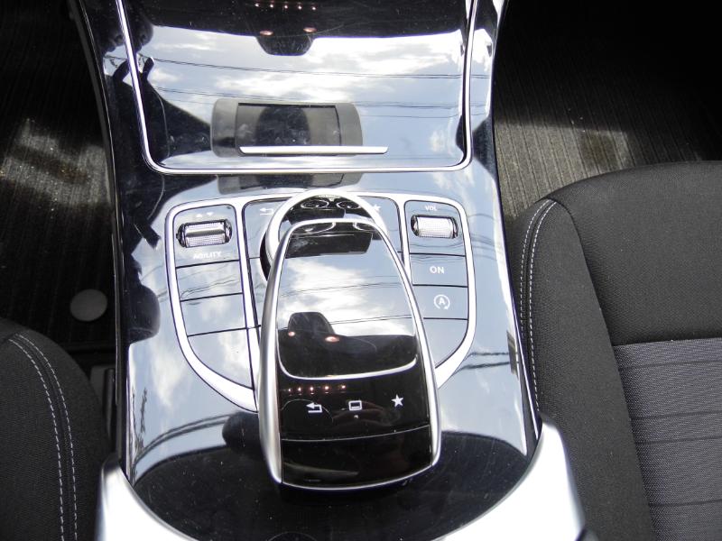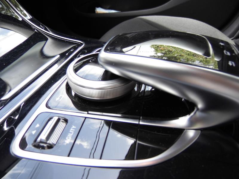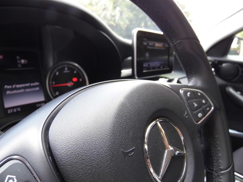 Les plus attentifs d’entre vous auront peut-être remarqué l’absence de levier de vitesses au niveau de la console centrale, et pour une bonne raison : Si vous optez pourla transmission automatique 7G-TRONIC PLUS notre essai en Martinique, ce levier est représenté sous forme de commodo en lieu et place de la commande d’essuie-glace et on se remémore d’un coup la demi-tonne de films et de séries américaines où on voit les acteurs user de l’énorme levier aussi long que votre avant-bras pour enclencher les rapports. Mais rassurez-vous, il est ici miniature, tellement qu’on ne le voit pas vraiment sur les photos ! Quoi qu’il en soit, ce changement a permis quelques (bons) délires de designers afin de rompre avec ce qu’on voit trop souvent. On enclenche le mode D et on se laisse bercer sur notre rocade. Le volant tient parfaitement en main grâce à un arceau épais et des reposes-pouces suffisamment creusés, son poids est calibré juste comme il faut en conduite douce, et la direction est d’une étonnante réactivité et précision pour une berline familiale de 4,69 mètres de long !