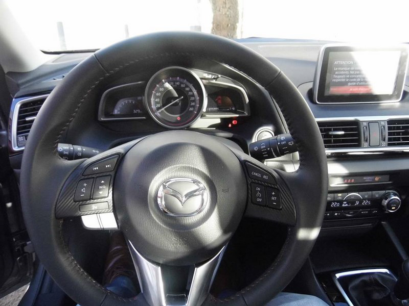 Allez, nous nous lançons sur la rocade direction les Salineshistoires de vérifier nos premières impressions… Tenue de route comme précision de la direction tout y est… La rocade défile paisiblement et nous attaquons la partie petites routes… Même si nous manquons un peu de Peps dans la version 1.5 essence 120 chevaux boîte manuelle de cette Mazda 3, nous attendrons avec impatience le 2.2 150 chevaux de la version diesel chez Centre auto bientôt… En bref la voiture est axée sur la tenue de route et le confort intérieur avec une consommation parfaitement maîtrisée…