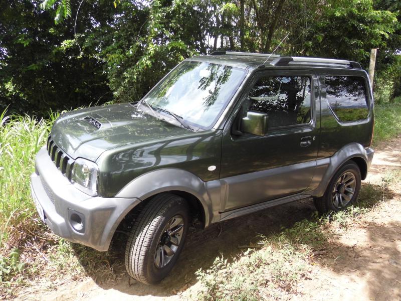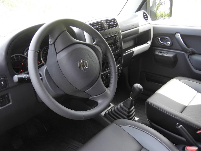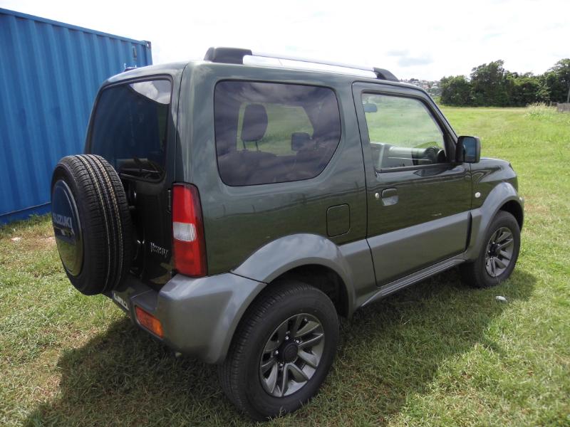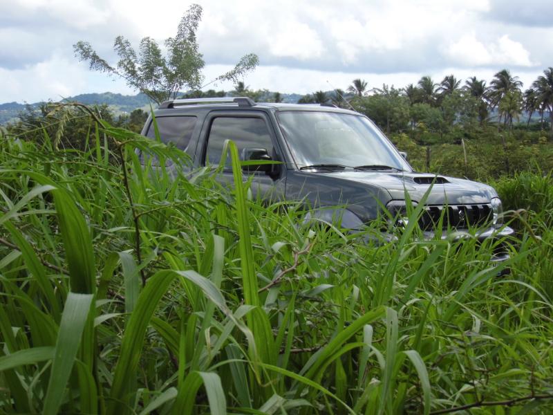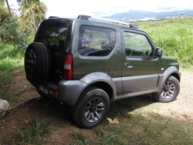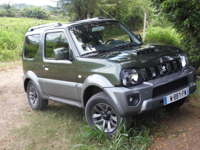 Du légendaire 'Roy' des petits 4X4 chez Suzuki Martinique… Nous y voilà… Nouvelle version duJimmy cette année après bientôt 15 ans de loyaux services auprès d'une clientèle d’aficionados…. Mais pourquoi aimons nous à ce point le Jimmy ? Est-ce sa forme cubique, ses lignes dépouillées de vrai baroudeur? Est-ce ses excellentes aptitudes de tout terrain? Avec l'essai que nous réalisons justement sur des chemins plutôt défoncés nous nous rendons compte que cette dernière qualité est loin d'être surfaite… Côté design pour cette version 2015 au delà de nouvelles jantes alu 15 pouces à 5 doubles branches en lieu et place des jantes 15 pouces à 5 branches de la version JLX, rien de change ! On serait tenté de dire que c’est heureux tant ce micro 4×4 long de 3.665 m garde une bouille sympathique et une allure de gros jouet… Il est pourtant né en septembre 1998!!! Restylé fin 2005 puis fin 2012, le Jimny profite de l’arrivée du millésime 2015 pour adopter trois nouvelles teintes de carrosserie qui sont les suivantes : –Cool Khaki Pearl Metallic