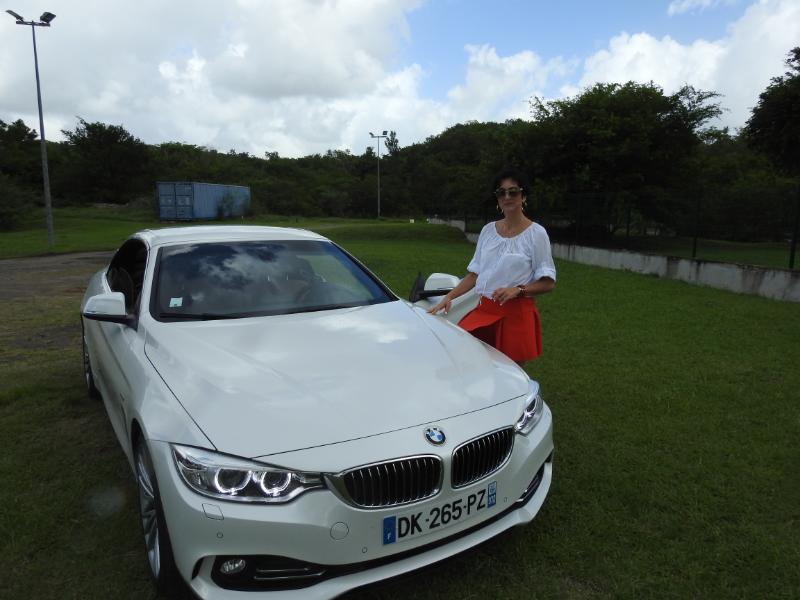 Diantre, nous voici avec Valérie Travert directrice commerciale régionale de la régie France-Antilles… Et pour adapter un véhicule à son tempérament, il fallait que nous réfléchissions un temps soit peu… Pour avoir déjeuner avec elle afin de préparer cet essai, puis obtenir un avis de Valérie sur le potentiel véhicule nous avons eu un flash!!! Dynamique, femme active par définition, issue de l'école des cadres du commerce, élégante, délicate et pointilleuse, elle gère d'une main de sûre professionnelle l’organisation commerciale des titresdu groupe FA sur la Martinique, la Guadeloupe, laGuyane et la Métropole. France-Antilles, Créola, le 97,2, FA magazine… Bref, c'est du lourd… Bah…. Quoi ou plutôt quelle voiture lui mettre en mains??? Et bien oui donc!!! Pourquoi pasla 420 D de BMW et ses 184 cv Valérie ? Nous tentons ainsi de casser la rigueur des responsabilités Pros (Parfaitement assumées), pour un côté "décapotable" et"Vamos à la Playa..." Juste cool… Essayons… Rencontre avec Valérie Travert chez BMW Martinique, directrice commerciale régie France-Antilles : Grantomobil.fr: «Valérie bonjour, nous sommes très heureux de vous proposer cet essai BMW… Mais avant de vous remettre les clés pouvez-vous nous parler de votre cursus professionnel?» Valérie Travert directrice commerciale régie FA: «Oui avec plaisir et je vais être brève et synthétique… Mon parcours avant tout est driver par la relation clients… Cette relation clients est au centre de ma carrière… Le domaine commerciale est le deuxième point sensible de cette même carrière… Après au niveau secteurs d'activités, j'ai travaillé dans trois domaines qui sont: les télécoms, la décoration et les médias dernièrement… J'assume actuellement une mission depuis près d'un an sur France-Antilles celle-ci m'a permise de redresser le CA et la marge des titres du groupe… Pour chaque mission je travaille avec des équipes d'assez grandes ampleur… J'aime le management, j'aime les défis, je suis une femme de challenges…» Grantomobil.fr: «Sur le plan privée cette fois… Femme mariée avec deux enfants et cette charge professionnelle lourde et privative… Comment tout cela se gère?» Valérie Travert directrice commerciale régie FA: «Oui comme vous le dite je suis mariée, j'ai deux grands enfants de 13 et 17 ans… Ado et pré-ado donc pas toujours simple… (Rire). Mais cela me permet de rester dans le vent... C'est très bien… La gestion du temps c'est aussi mon métier donc tout va bien de ce côté là…» Grantomobil.fr: «Vous êtes arrivée en Martinique il y a une année mais vous y aviez vécu 5 ans déjà…» Valérie Travert directrice commerciale régie FA: «Oui de 2004 à 2009… Je suis reparti pour la métropole en 2009 pour un bref séjour et encore guidée par des opportunités professionnelles… Me voilà de retour depuis janvier 2015 donc… J'aime beaucoup la Martinique, c'est un lieu de vie épanouissant… L'île est merveilleuse… Il est vrai qu'après le travail, quand je trouve le temps, j'use de loisirs qui m'intéressent tellement ici… Prioritairement le Golf… Puis leKitesurf que j'aime tout particulièrement… J'ai repris ces activités avec un réel plaisir…» Grantomobil.fr: «On est chez BMW, nous allons essayer la 420D. Vous connaissez les voitures de cette marque?» Valérie Travert directrice commerciale régie FA: «Oui je connais très bien la marque… J'ai possédé longtemps une BMW… Mais de surcroît j'ai, pendant ma période 2004-2009, acheté ici chez BCAM ma première MINI!!!» Grantomobil.fr: «Xavier Saint Yrieix directeur BCAM vient de nous remettre la clé de la BMW 420 D nous y allons?» Valérie Travert directrice commerciale régie FA: «Ravie!!!» Nous voici donc en direction des Trois Îlets… L'avis de Valérie: «Très difficile de mettre à défaut la série 4 la BMW 420 D digère stable et intelligente les difficultés imposées par nos routes mais aussi les petites erreurs de conduite… Le freinage répond sans oppositions aucunes, la direction obéit souple et ultra précise au moindre souhait… Le train arrière sur ma route préférée suit les ordres de l’ESP et la fougueuse 420D s’accroche au sol sans bruit faire. C’est après avoir avalé 15 Km que je me souviens que nous sommes dans une propulsion... Rassurant pour les récalcitrants à ce mode de transmission non ?En bref, et tout simplement, la féline me laisse un goût de citadine délicate en mode 'je bosse' avec insertion dans le trafic puis, très naturellement, en mode je me fais plaisir, la bestiole vous indique le nord et le sud avec volupté et tempérament… C’est la 420D de BMW qui vous adopte et pas l’inverse je crois… C’est une question de coup de foudre provoqué, imposé par ses lignes subtiles et fusionnelles avec votre esprit puis rapidement avec votre philosophie de conduite…C'est la voiture de la femme moderne, active, confortable et pratique à souhait… Je triple Likes!!! »