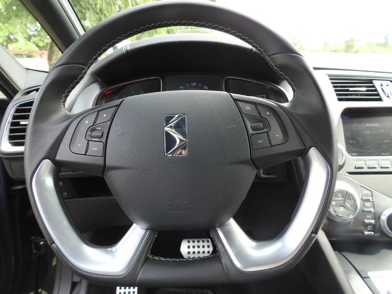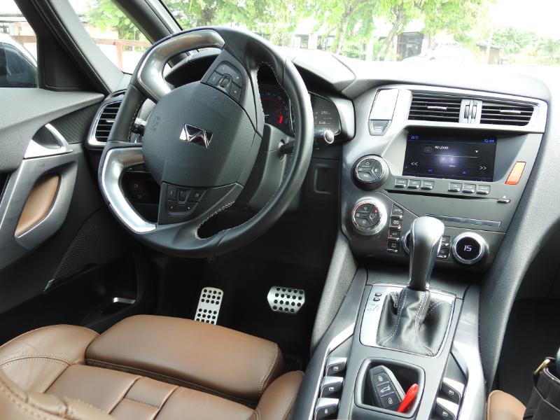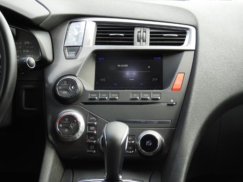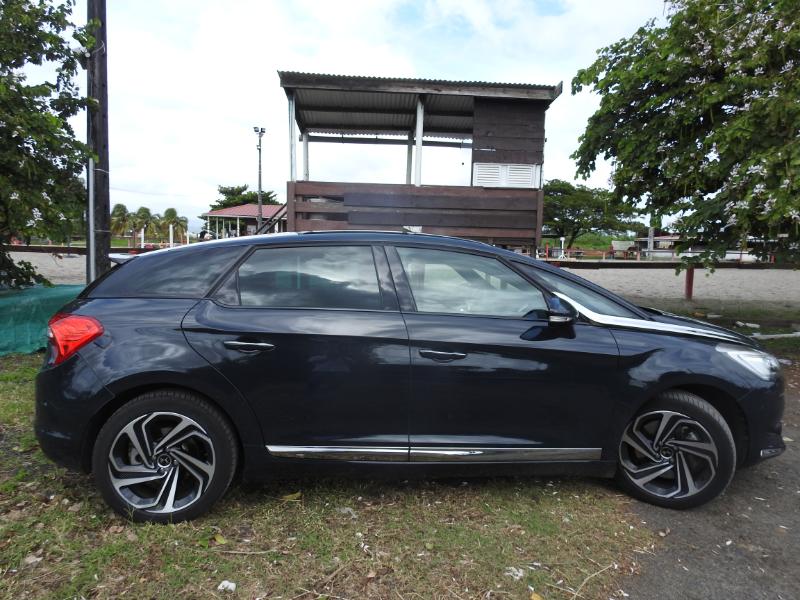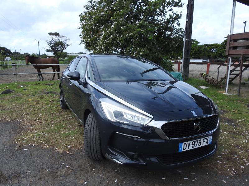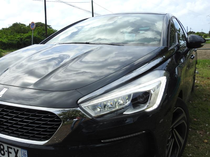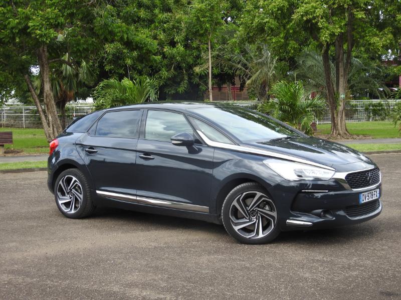 Quelques modifications afin d’être plus confortable grâce à une nouvelle suspension, mais aussi de manière à correspondre aux nouvelles normes anti-pollution Euro 6. Prise en main de Grantomobil.fr chezCitroën Martinique dépositaire de la marque, avec le sentiment dès l'entrée en concession que nous nous retrouvons devant un vrai modèle Prémium de surcroît absolument dépourvue du sigle aux chevrons!!! En effet la volonté de Citroën est très claire depuis 2014... En choisissant le luxe et la volupté, les matériaux des grandes du monde automobile, eux alliés aux technologies les plus avancées, la stratégie est de bien hisser la marque DS sur le podium habituellement réservée aux luxueuses étrangères... La DS n'est plus une Citroën et nous l'avons bien compris dès la prise en main de la belle Prémium. Le logo DS s'affiche fièrement non pas pour masquer le passé mais plutôt pour marquer un vrai renouveau et des ambitions hautes en technologies et luxe Prémium...Pari réussi? La DS5 a frappé l’imagination dès sa parution sur nos routes : courtaude (4,53 m), elle opte pour une apparence luxueuse et totalement anticonformiste. Le noir métallisé de notre exemplaire se mariait à merveille avec l’abondance des chromes : le moindre rayon de soleil sur sa carrosserie lui donnait une allure séduisante et faisait tourner les têtes. Un toit vitré gravé complète cette apparence sophistiquée. En 2014, sa suspension a été revue pour plus de confort et ce, grâce à de nouveaux amortisseurs qui atténuent autant que faire se peut les nids de poules des routes Martiniquaises. En atteignant l'incomparable suspension de laC5, ses qualités dynamiques ont été totalement préservées : une conduite sportive peut s’envisager sans le moindre remord ! A l’intérieur, on retrouve ce tableau de bord futuriste digne d’Airbus avec des commandes à foison… Le toit en verre prodigue une belle luminosité intérieure qui donne l’illusion d’espace. Un moteur conforme aux nouvelles normes Euro 6b Depuis septembre dernier, les normes Euro 6 b sont d’application pour les moteurs diesel : le moteur 2.0 Blue HDi 180 qui n’est qu’une évolution du 2.0 HDi 160 ch s’y conforme parfaitement avec ses 114 g/km de CO2 et 4,4 l/100 km. Les travauxdes motoristes PSA se sont portés sur trois aspects, à savoir l’intégration d’un nouveau turbo à géométrie variable, l’augmentation des pressions de suralimentation et des pressions de combustion. En outre, son échappement est constitué de trois systèmes pour piéger les hydrocarbures (HC), les oxydes de carbone (CO et CO2) les oxydes d’azote (NOx) ainsi que les particules de suie. Parmi ces systèmes, PSA a opté pour une technologie qui a fait ses preuves dans les poids-lourds, à savoir la Réduction Catalytique Sélective (RCS) (ou ‘Selective Catalytic Reduction’ - SCR en anglais). Le module RCS transforme par injection d’Adblue® (urée - NH2-CO-NH2), jusqu’à 90% des oxydes d’azote (NOx), en vapeur d’eau (H2O) et en azote (N2) tout en diminuant jusqu’à 4 % les émissions de CO2. La DS5 dispose d’un réservoir d’une contenance de 17 litres d’Adblue® qui lui assure une autonomie de 20.000 km. Ce deux litres diesel est secondé par une nouvelle boîte automatique à six rapports qui encaisse les 400 Nm de couple du moteur. Réactive, elle possède un mode sport qui la rend plus véloce à répondre. Regrettons toutefois que cette boîte ne dispose pas de palettes derrière le volant. Celles-ci raffineraient encore plus la conduite sportive. Quand au volant, il faudra s’habituer à son méplat… Sur papier, ce moteur développe une puissance de 180 ch (133 kW) à 3750 rpm et un couple maximal de 400 Nm à 2000 rpm. Comparativement au HDi 2.0 160 ch qu’il remplace, il faut admettre qu’il est nettement plus sonore et que, malgré ses 20 chevaux supplémentaires, ses performances en demeurent très proches. Quant à la tenue de route, le qualificatif "confort" lui sied plus que la version qu’elle remplace : son toucher de route est plus conforme à ce que l’on attend d’un véhicule de cette classe.