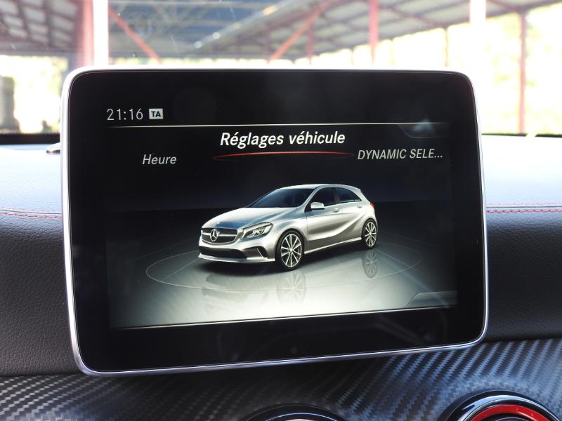 Plus musclée que jamais, la nouvelle Mercedes Classe A 45 AMG (2015) maintient une homologation en cycle mixte à 6,9 litres aux 100 km et des rejets de 162 g de CO2 par km. La Mercedes Classe A 45 AMG 2016 est livrée de série avec les programmes de conduiteDynamic Select « Comfort », « Sport », « Sport + » et « Individual ». *En option, un pack Dynamic Plus AMG regroupe entre autres un différentiel autobloquant mécanique sur l’essieu avant, le châssis sport Ride Control AMG doté d’un amortissement adaptatif et un cinquième mode de conduite au nom évocateur : « Race ».