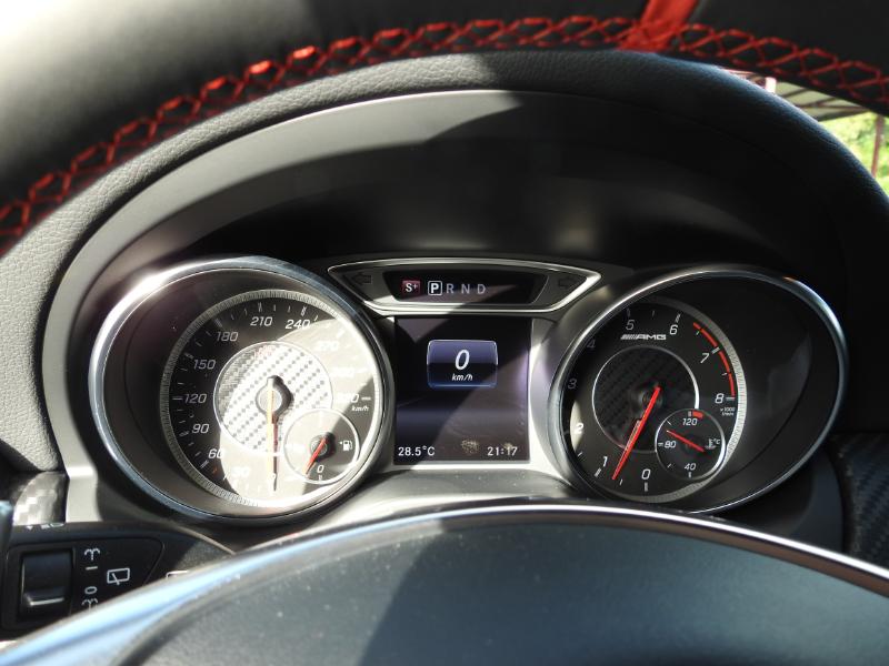 "Et bien même si ce n'est pas la priorité de l'acheteur d'une AMG, le 4 cylindres en ligne autorise à parler de performance en consommation de carburant… Le mode 'Comfort' permet de réguler la consommation de façon réelle et significative… Sur nos routes et avec une conduite économique le véhicule consomme entre 7 et 8 litres au 100 km ce qui constitue déjà, compte tenu du segment, de très beaux résultats.
