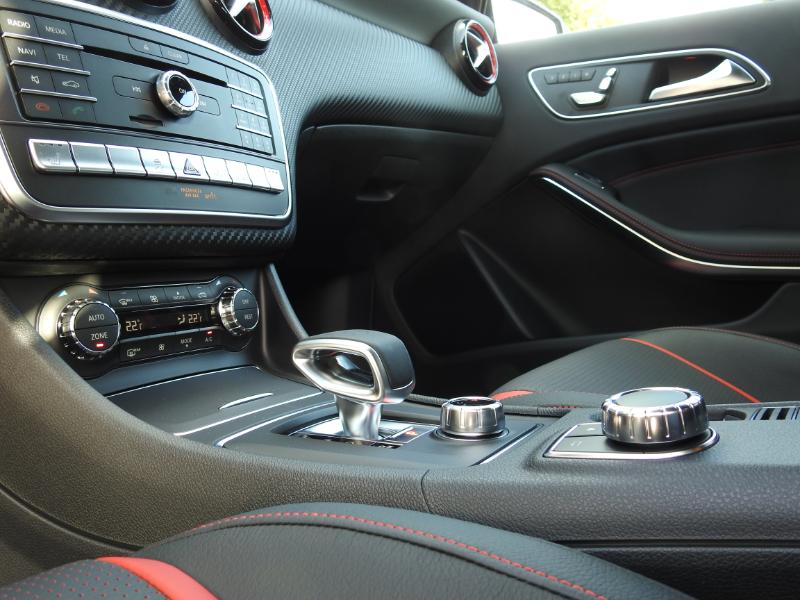 "La Boîte 9 rapports équipe les Mercedes qui tournent autour de 450 à 500cv… Ici pour l'AMG A45 le compromis idéal était la boîte de vitesse automatique de 7 rapportsSPEEDSHIFT DCT AMG plus petite et plus légère afin de préserver le poids du véhicule et gagner en rapidité de passages de rapports raccourcis d'ailleurs par AMG… On gagne en précision, en rapidité, en couples… Cela joue également sur la bonne consommation du véhicule…"