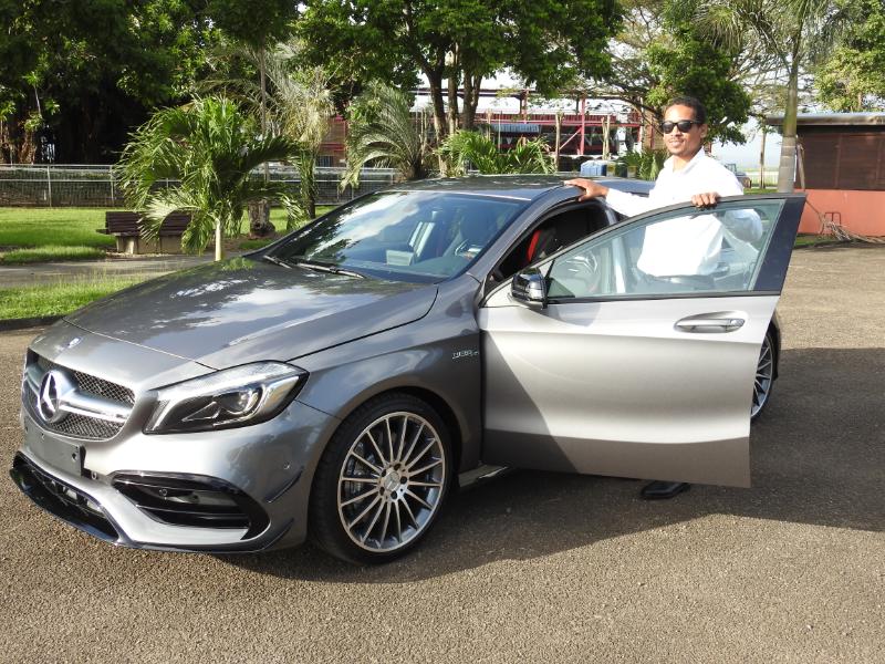 "Oui Jean-Marc, c'est la première AMG A 45 en Martinique… 381 cv 2,0l Turbo… Une première pour ce moteur sachant qu'il y a déjà des 360 cv qui roulent sur nos routes…"