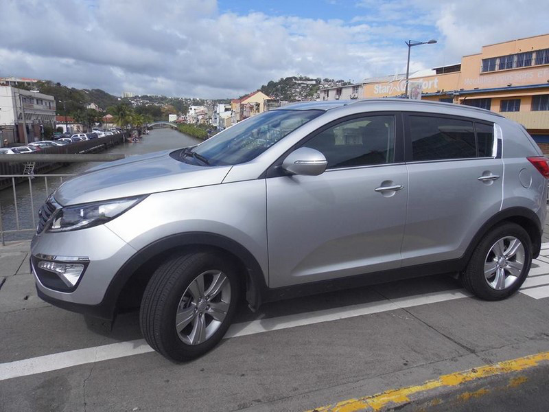 chez AutosGmnous sommes frappés de prime abord par ses lignes pures qui semblent dessinées demains de Maître… Justement, le Maître existe bien !!! Il n’est autre que Peter Shrever celui la même qui dessina en son temps l’Audi TT et l’EOSde Volkswagen !!! Les lignes plairont à la citadine ‘Rocadienne’ qui désir un véhicule plus sauvage le week-End et au Gros-Mornais‘Lacéen’ qui lui à besoin de mixité pour ses tribulations citadines justement…Passé le cap du design, voici Gran Tomobilavec le Sportage sur la rocade pour gagner les routes du nord de la Martinique… La seconde très bonne impression du Crossover de KIAc’est son habitacle et particulièrement ses sièges arrière inclinés qui ordonnent un passage de genoux idéal… Le confort des passagers fut donc l’autre priorité du constructeur coréen. Kia qui dans sa ‘sans doute’ volonté d’épurer la console de jeux du conducteur à produit un système d’approche des commandes simple et très efficace. Le conducteur est donc aux instruments d'un vrai-faux Cessna avec une facilité déconcertante pour faire rouler la machine sur nos pistes…