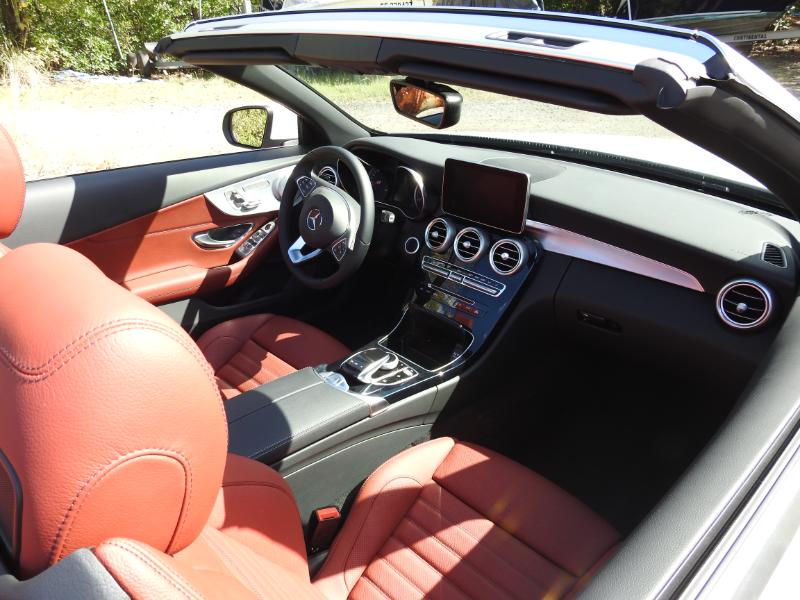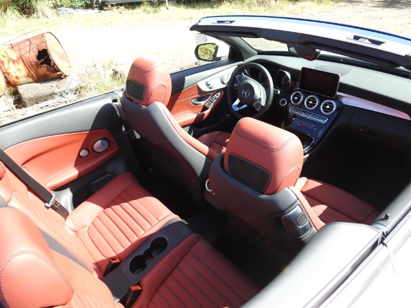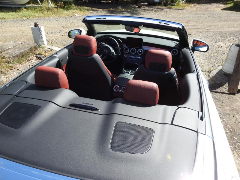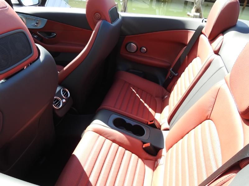 Et franchement le style final capoté ou non, couplé à la boîte de vitesse 9 rapports (9G-TRONIC) qui elle-même entraîne sous le capot un vrai 211 ch ça décoiffe sur la rocade... En fait non cela déménage car remarquablement silencieuse capote fermée, la C Cabriolet isole aussi très efficacement ses occupants des courants d'air en configuration ouverte et ce jusqu'à environ 110 km/h avec l'astucieux système Aircap de cette C Cabrio. Au classique filet anti-remous motorisé se dressant derrière les appui-têtes des passagers arrière, ce dispositif en ajoute un autre surmonté d'un petit spoiler au sommet du pare-brise. Pas très gracieux, mais plutôt efficace. Pour décapoter même à 23°, la C Cabriolet peut aussi disposer du fameux Airscarf (littéralement écharpe d'air, soufflant de l'air chaud sur la nuque des occupants avant. Un vrai plus pour les frileuses du soir ! ...