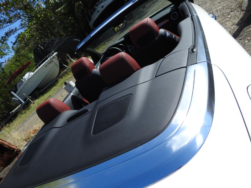 Sur le plan moteur, la version 180 (156 ch 250 Nm) d'entrée de gamme pourrait représenter un bon compromis en raison d'une masse (1 525 kg) encore raisonnables... Nous avons donc débuté notre prise en main avec la C 250, dont le 4 cylindres turbo essence de 211 chevaux autorise des performances qui décoiffent mais raisonnables pour le style de conduite qu'il convient d'adopter au volant d'un cabriolet. Discret, à défaut de chanter comme un six cylindres, ce bloc présente l'avantage de bien s'adapter à la gestion de la boîte automatique 9 rapports Mercedes. Tarif de notre véhicule d'essai 78 444 euros en sachant que la gamme C Cabriolet démarre à 51 300 euros en Martinique.