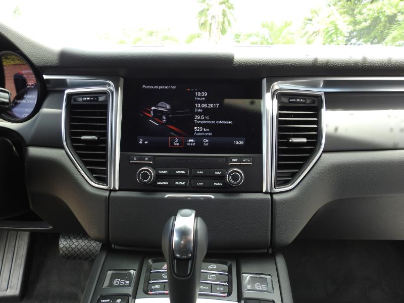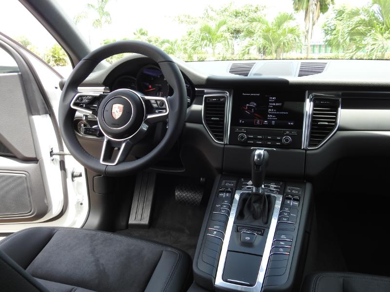 Les équipements de série se rapprochent de ceux proposés sur le Macan S. Ainsi, à l’intérieur, il est doté de sièges 'confort' avec réglage électrique huit positions côté conducteur, de sièges avec bande centrale en alcantara, du Porsche Communication Management (PCM) de toute dernière génération, de l’avertisseur de changement de voie ainsi que du hayon arrière automatique. Le Macan de base est pourvu en série d'une climatisation triple zone, de l'avertissement de changement de bande et d'une porte de coffre a ouverture/fermeture automatique. Coté multimédia, on a droit à un écran tactile 7'', aux connexions USB, AUX et Bluetooth, à deux ports SD et aussi à un disque dur intégré pour stocker la musique.