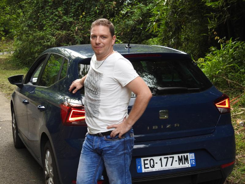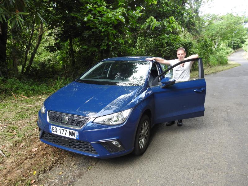 « Je trouve la voiture très agréable à conduire avec une assise un peu ferme mais qui maintient bien sur les petites routes à lacets... J'aime beaucoup la facilité de prise en main et la souplesse de la direction... Je suis également surpris par la réactivité du moteur de 115 ch et la bonne qualité des reprises sur les petites route de Palmiste... Le confort général est vraiment de qualité et la boîte de vitesse à 6 rapports est également très souple... Cette voiture correspond assez bien à l'idée que je me fais d'une voiture pratique et plutôt nerveuse... L'insonorisation est quasi parfaite... j'ai l'impression d'être dans une bulle avec un son plutôt recherché côté radio... Cool... Le moteur semble tourné comme une horloge... Suisse... (Rires)... Vraiment une belle découverte cette SEAT IBIZA... Merci à SEAT Martinique et Grantomobil.fr d'avoir pensé à moi et l'Escale Gourmande pour cet essai des Chefs de cuisines...