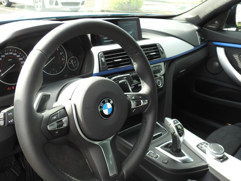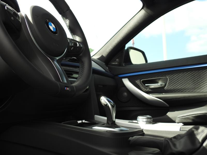 Très classique dans son exécution, l’intérieur ne dépaysera pas les habitués de la marque. Faisant fi d’un écran tactile, la Série 4 s’en remet donc à des boutons « physiques », et à la traditionnelle molette du système iDrive, ce qui n’est pas forcément pour me déplaire. Quoiqu’il en soit, l’ergonomie ne prête pas le flanc à la critique, puisque les commandes tombent naturellement sous la main. La position de conduite, au ras du sol, est parfaite, tandis que les sièges offrent un maintien irréprochable.