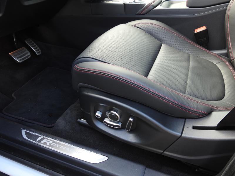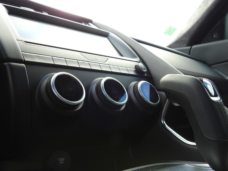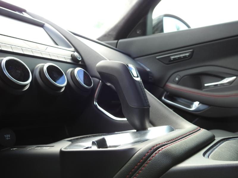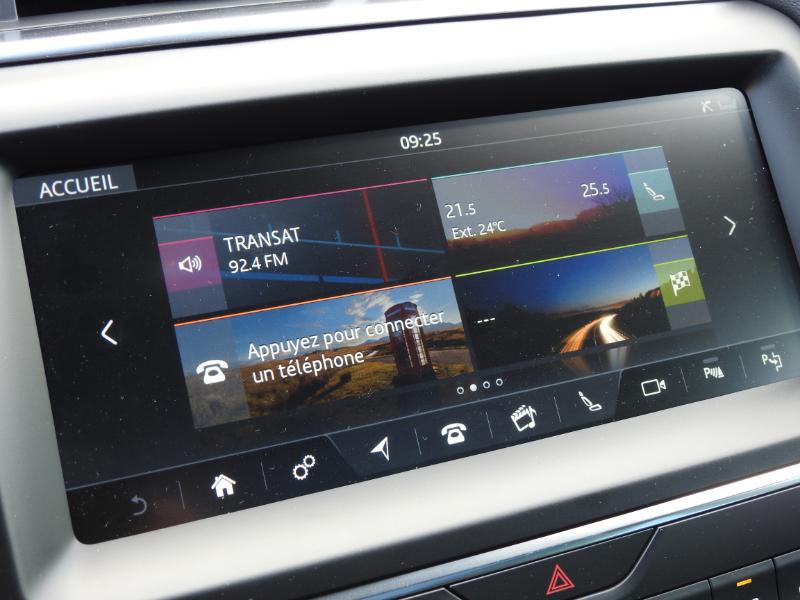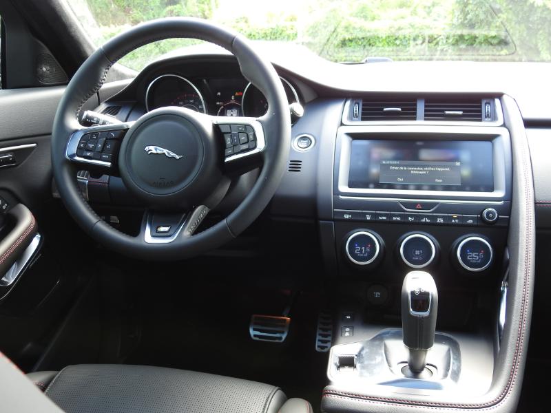 Monter à bord de l’E-PACE rappelle l’expérience de se glisser dans une F-Type. On n’a pas l’impression de se retrouver au sein d’une Jaguar presque abordable de 39,000 euros, mais plutôt d’une XF de 85 000 euros. L’attention aux détails, la finition et les matériaux sont des gages de qualité. Selon les versions et les options, le E-PACE peut inclure le système d’info divertissement InControl Touch Pro avec grand écran tactile de 10 pouces, un point d’accès Wi-Fi 4G, un écran d’affichage TFT de 12,3 pouces et d’un affichage tête haute. L’espace à l’avant est généreux alors que la banquette arrière, bien qu’elle puisse accueillir deux adultes, servira probablement de stockage supplémentaire en plus du grand compartiment avant et les pochettes à même les portières. Le coffre est plus que décent offrant un volume de 577 litres.