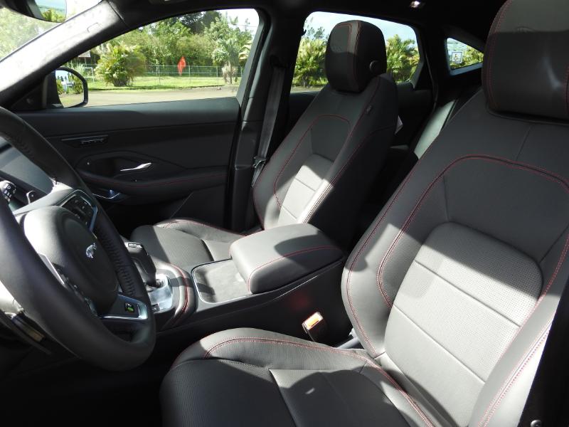 La combinaison de la carrosserie dynamique et la cabine luxueuse du E-PACE sont couronnées par un groupe motopropulseur qui répond et dépasse les attentes. La Martinique se contente de trois versions des moteurs turbocompressés de 2,0 litres à 4 cylindres à essence de la famille Ingenium. La puissance produite varie entre une version de 180 chevaux et 246 et 296 chevaux. Deux sont jumelés à des systèmes de traction intégrale respectifs et à une transmission automatique ZF à 9 vitesses. Alors que la déclinaison à 246 chevaux se fie sur un simple système de traction intégrale (TI) permanente, la R-Dynamic à 296 chevaux testée repose sur la configuration TI Active Driveline de Jag. Ce système a la capacité de déplacer pratiquement tout le couple vers l’avant ou l’arrière, selon les besoins. Ses fonctionnalités intelligentes lui permettent de rouler uniquement en tant que véhicule à traction avant, puis de réengager les quatre roues lorsque nécessaire. Dans la conduite de tous les jours, le système se gère lui-même, assurant son mode le plus efficace est constamment à l’œuvre. La conduite dynamique repose sur les quatre roues pour une adhérence et des performances assurées.