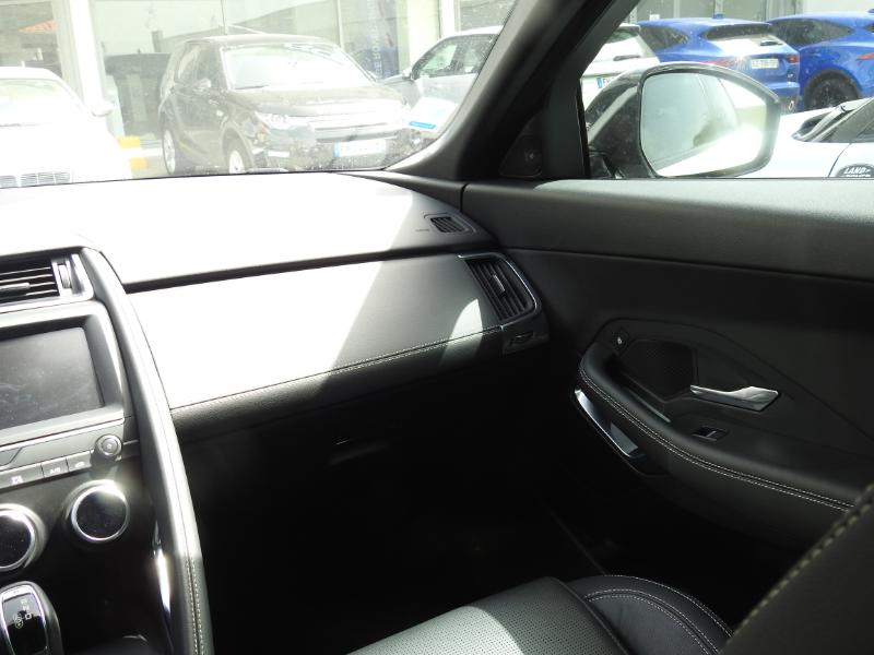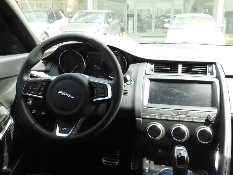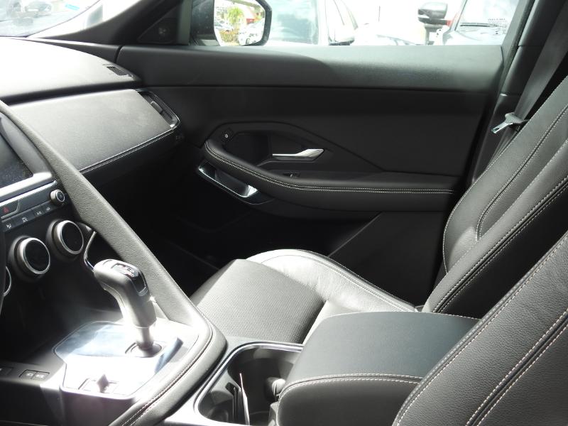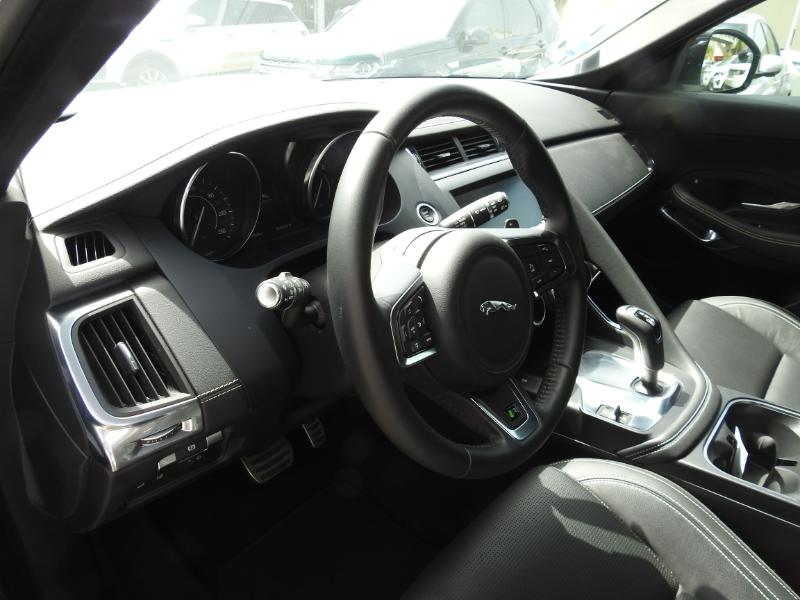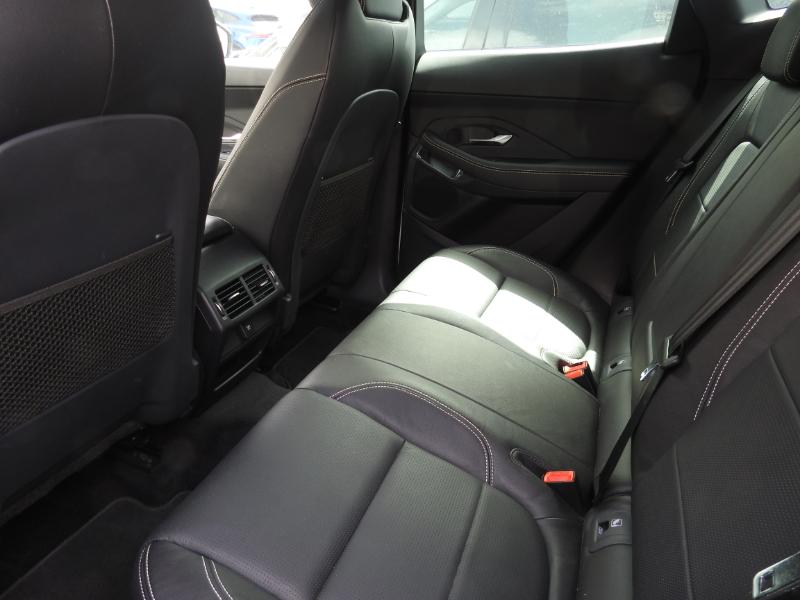 Comme pour la carrosserie, c'est de la F-Type que les stylistes se sont inspirés pour dessiner l'habitacle de l'E-Pace. On retrouve donc une planche de bord asymétrique, entièrement tournée vers le conducteur et surplombée par une large casquette qui se prolonge jusque sur la console centrale par une originale poignée de maintien verticale. L'effet cockpit ainsi obtenu est, de fait, digne d'une voiture de sport. Au milieu de la console, comme sur la F-Type toujours, on trouve trois grosses molettes pour régler la climatisation, surmontées par un grand écran tactile de 10 pouces parfaitement intégré. Connecté Bluetooth et Wifi, grâce à un hotspot 4G, il permet, entre autres, d'écouter la musique en streaming. Suivant les versions, on dispose de quatre prises 12V et de cinq prises USB. Sur la version HSE, l'instrumentation conventionnelle est remplacée par un tableau de bord virtuel qui peut être complété par l'affichage tête haute...