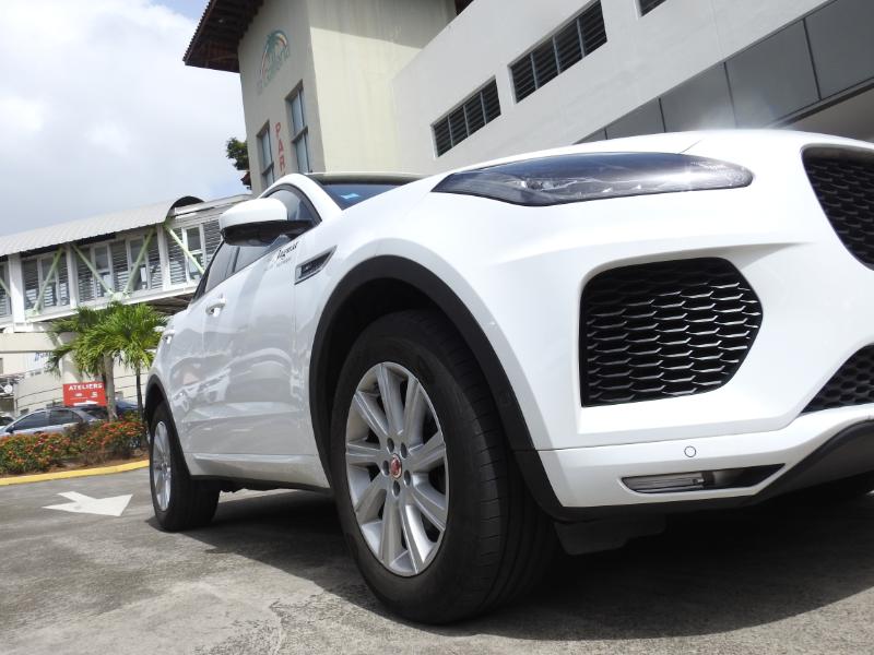 C'est donc tout naturellement le Range Rover Evoque qui a servi de base à l'E-Pace, lui offrant notamment sa plateforme, agrémentée de trains roulants spécifiques. Avec une longueur de 4,40 m, l'E-Pace est pratiquement de la taille de son cousin, soit plus court que son grand frère de 33 cm. Les gènes Land Rover s'expriment bien sûr en tout terrain où une transmission intégrale sophistiquée (En option) permet à l'E-Pace d'afficher des capacités de franchissement supérieures à la plupart de ses rivaux. Mais, cette construction robuste se paye sur la bascule. Malgré l'emploi de nombreux éléments en aluminium pour les suspensions ou la carrosserie, il y affiche deux bons quintaux de plus que la moyenne du segment. Tout le challenge de Jaguar a donc consisté, malgré ce handicap, à offrir à son SUV un comportement dynamique exemplaire. Car, comme le suggère sa ligne très suggestive, l'E-Pace mise d'abord sur sa sportivité pour se distinguer de la concurrence. C'est donc tout simplement de la F-Type, redoutable croqueuse de Porsche 911, que Ian Callum, le responsable du style maison, s'est inspiré pour dessiner l'E-Pace. Avec beaucoup de réussite, il faut le reconnaître. Car, avec sa large calandre, son capot plongeant et ses feux étirés, ses galbes généreux et son profil épuré, ce SUV dégage effectivement un réel pouvoir d'attraction. Une clé majeure du succès. Sur les routes de Martinique la monture renverse les codes et les gens ralentissent pour mieux la contempler...