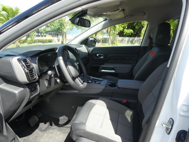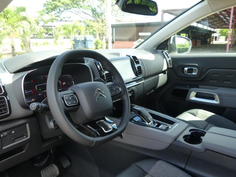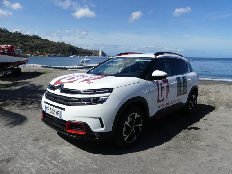 Le moins que l'on puisse dire c'est que Citroën est sans doute en train de réaliser le même coup que pour la sortie de la nouvelle C3 qui reste un des plus beau succès commerciale de la marque… Oui car en matière de polyvalence c'est à dire d'efficience sur nos routes martiniquaise plutôt mixtes et sévèrement abîmées par moment, nous savons à quel point un véhicule doit, en réponse, présenter robustesse, souplesse, adaptation mais aussi confort intérieur afin d'atténuer pour les passagers cet environnement hostile et, de plus, présenter une particulière résistance à notre climat iodé… Le nouveau C5 AirCross répond avec des armes plutôt redoutables, armes qu'il puise tout d'abord dans son ADN dédié au confort mais aussi à son gabarit et sa puissance 1,6L 180 cv doté d'une boite automatique 8 vitesses pour notre modèle d'essai… Départ de chez SODIVA Citroën avec la vedette du moment !