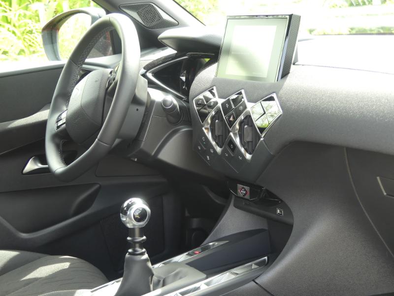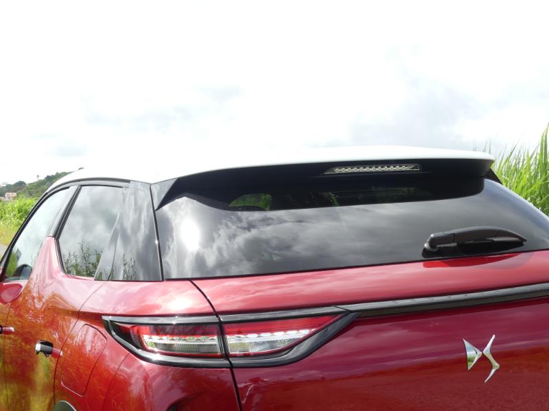 Le nouveau DS3 Crossback offre le meilleur niveau d’équipement et de finition de la catégorie. Il ne vise donc pas la concurrence française, mais cible plutôt les deux modèles allemands que j'évoquais... Côté conduite, il revendique le meilleur compromis entre confort (de sellerie cuir comme de suspensions) et dynamisme, mais montre également beaucoup en termes d’insonorisation et plus globalement en agrément de conduite. Le poste de conduite, lui, est 100% numérique avec un combiné personnalisable (de série), un affichage tête haute (en option) matérialisée par une lame transparente et un grand écran central tactile de 7 pouces, Le DS3 Crossback essayé en Martinique propose également le Kit mains-libres Bluetooth, Prise USB, Aide au démarrage en côte sans clé, Allumage des phares automatique, Frein stationnement électrique automatique, reconnaissance des panneaux de vitesse, détecteur de franchissement de ligne involontaire, la reconnaissance vocale...Caméra 360°, radar avant, recharge de votre téléphone à induction, accès sans clé, Apple Car Play, Adroïde Auto... Les passagers arrières sont installés dans un vrai confort malgré un regret : la garde au jambes un peu restreinte... Mais la note est rehaussée par la qualité de confort et la bonne tenue de route que j'évoquais un peu plus haut dans cet article !!!