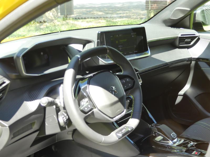 C’est en tout cas très plaisant au volant pour le conducteur qui s’étonnera peut-être des fonctions dédiées aux touches de piano de la console centrale qui se trouvent doublées de boutons tactiles pour les fonctions les plus usuelles (navigation, radio, téléphone), accessibles directement sur le petit volant ou par commande vocale. Ce qui est encore difficile à trouver dans une petite citadine, la nouvelle 208 est dotée des derniers systèmes d’aides à la conduite (régulateur adaptatif, aide au maintien dans la voie, reconnaissance des panneaux indicateurs, park assist…). Le Drive Assist Plus aide au maintien dans la voie grâce aux capteurs situés en partie basse du bouclier avant. Avec la boîte EAT8, il se combine à un régulateur actif avec fonction Stop & Go, plutôt rare sur cette gamme de véhicules.
