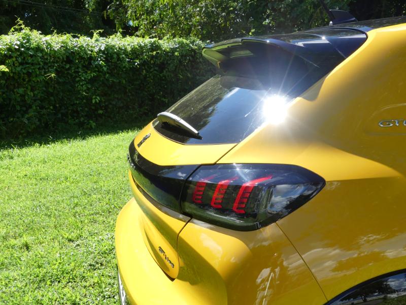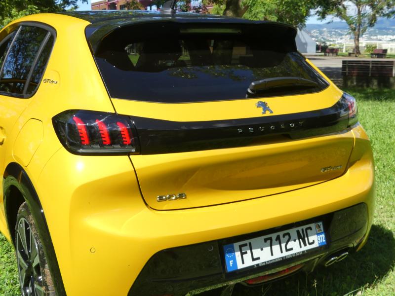 La nouvelle 208, plus longue, plus large et plus basse, tranche avec sa devancière. Les ingénieurs Peugeot ont sans doute dessiné un véhicule plus agressif qui en impose avec sa calandre verticale, son capot allongé et ses lignes tendues. La grande calandre en ressort donc d’autant plus, surtout que les contours du bouclier ont pour effet de la projeter vers l’avant. Sans oublier les élargisseurs d’aile sur les versions GT et GTLine notre essai. Ajoutez à cela les trois griffes des optiques Full LED (de série en finitions GT et GT Line) et vous obtiendrez une image qui risque vite de provoquer l'éblouissement dans les rétroviseurs. Empruntant la signature visuelle de la 508 à l’avant donc, la 208 reprend la face arrière des 3008/5008/508 avec la signature lumineuse à trois griffes surmontée par un bandeau noir courant sur la largeur du coffre.