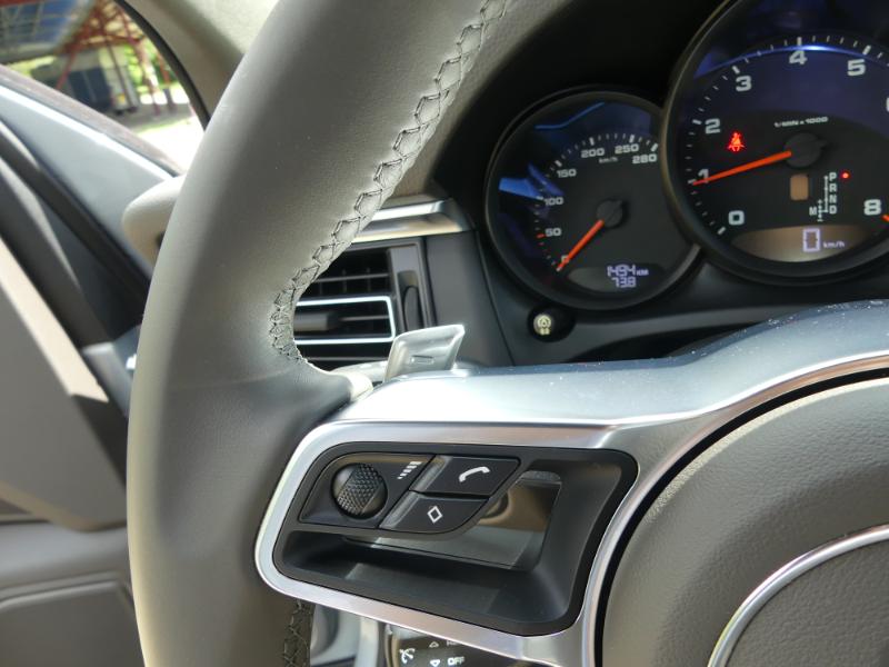 La console centrale me fait un peu penser à ce que doit-être la console d'un pilote d'A300 mais à l'usage et comme à l'habitude chez Porsche '1 bouton = 1 fonction' et après 30 minutes sur nos routes martiniquaises je dois bien avouer que cette console est simplement et purement très pratique... Les fonctions les plus indispensables comme la ventilation se règle avec une pression vers le haut ou vers le bas c'est juste parfait... Les fonctions 'SPORT' ou All ROAD sont tout de suite sur votre droite en bas de la console ceentrale et permettent d'agir en une fraction de seconde sur la motricité de votre Porsche Macan... Sans être un franchisseur de cols, le MACAN vous propose d'aborder les chemins chaotiques de notre île avec un mode 'ALL ROAD' et donc un peu plus d'agilité... La fonction 'SPORT' agit elle sur la boîte de vitesse, la direction et les suspensions afin de gagner en efficience... Ce n'est pas un vînt mot, ni une une touche pour la 'Déco', le MACAN s'énerve vraiment à souhait dès la fonction enclenchée de sa LED rouge... Miam...