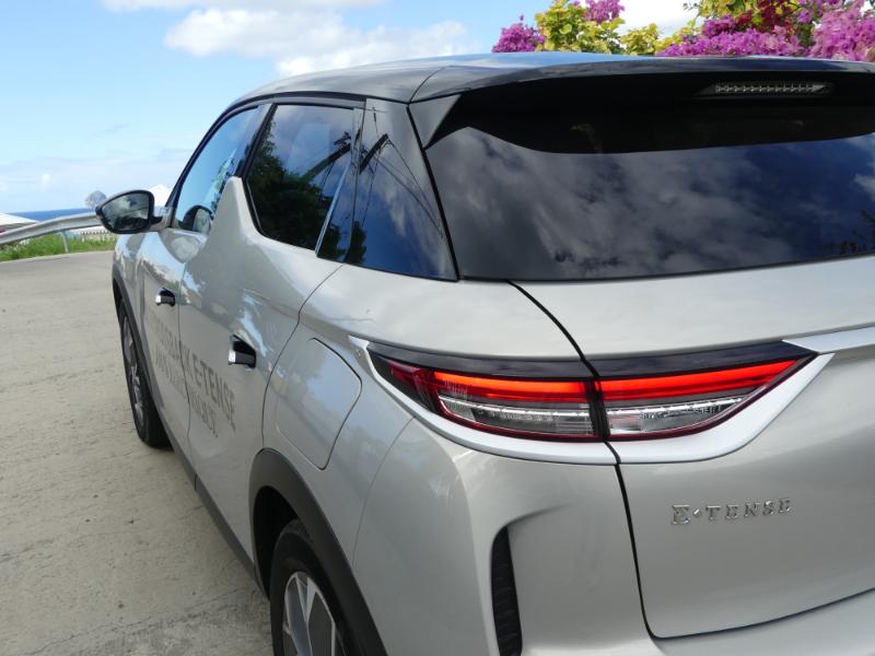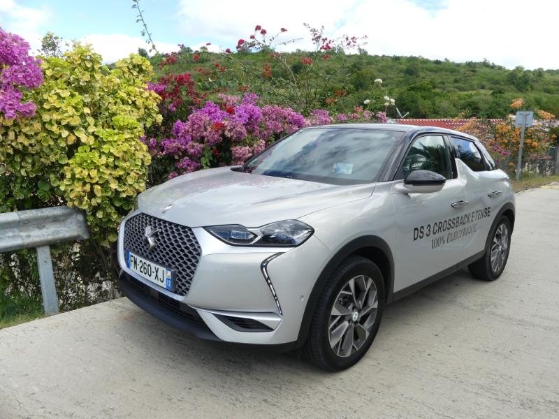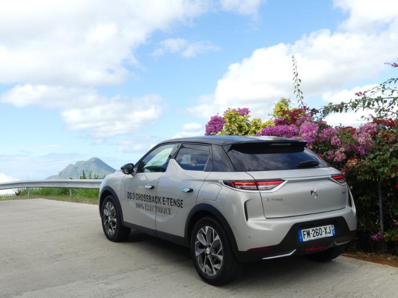 Fougueux et collé à l'asphalte de nos petites routes sinueuses de Martinique, le DS3 Crossback E-Tense défend une vraie nervosité particulièrement en mode 'Sport' et donc une belle qualité de reprise !!! Cela ne sera pas pour déplaire à quelques jeunes femmes impatientes ou quelques jeunes hommes pressés de les rencontrer... Citadine ? Oui sans possible doute, Chic et vraiment branché avec son look plutôt futuriste le DS3 Crossback se faufile dans les petites rues de Fort de France se faisant aussi facile à garer qu'à déplacer en mode silence... Pour nous c'est déjà le retour en concession des bons points a distribuer sans contrefaçons tant ce petit Crossover urbain DS3 Crossback E-Tense nous à convaincu en pimentant notre essai, il peut par conséquent ravir nos lecteurs et sûrement nos lectrices...