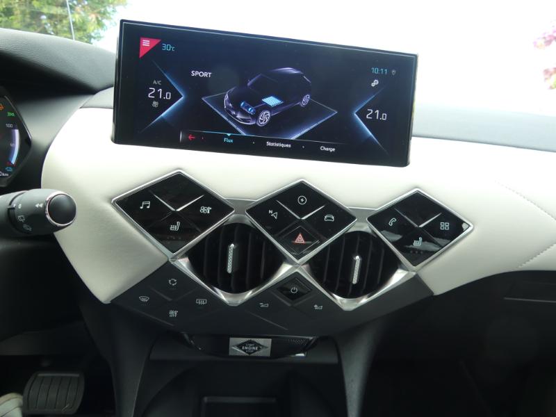 Le SUV urbain renferme sous son capot un moteur délivrant, selon les trois modes de conduites Eco, Normal et Sport, 80, 109 et 136 ch, sachant que le mode Normal est sélectionné par défaut lors du démarrage du véhicule... Ce moteur, délivrant un couple maximum de 280 Nm, est alimenté par des batteries lithium ion d'une capacité totale de 50 kWh. Avec, selon le cycle d’homologation WLTP, une autonomie de 320 km. A bord, le DS3 Crossback E-Tense offre un agrément de conduite remarquable, aidé par un excellent châssis PSA qui n’a plus à faire ses preuves et un tarage des suspensions qui permet un amortissement parfaitement calibré.