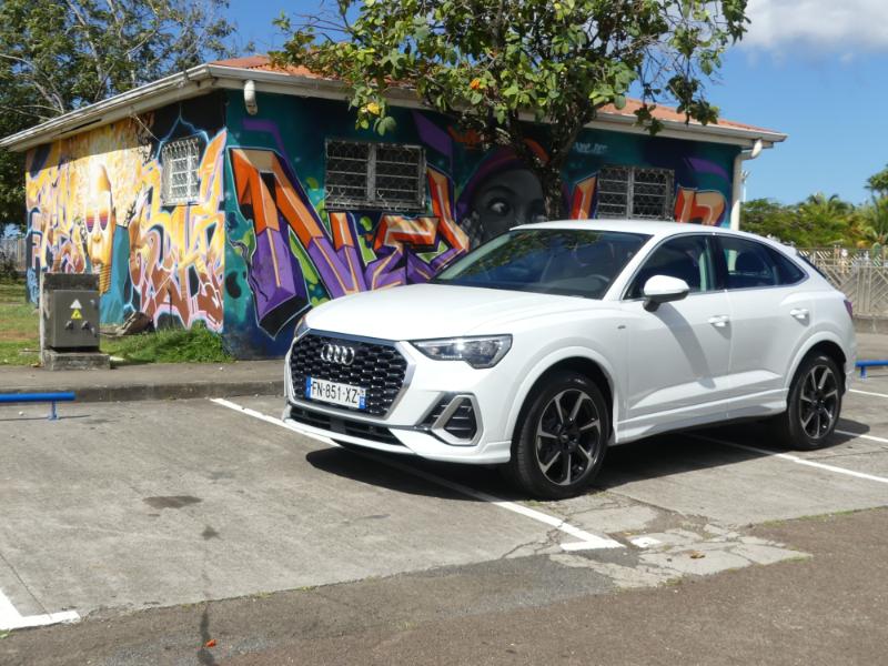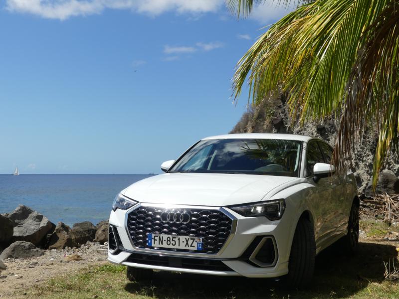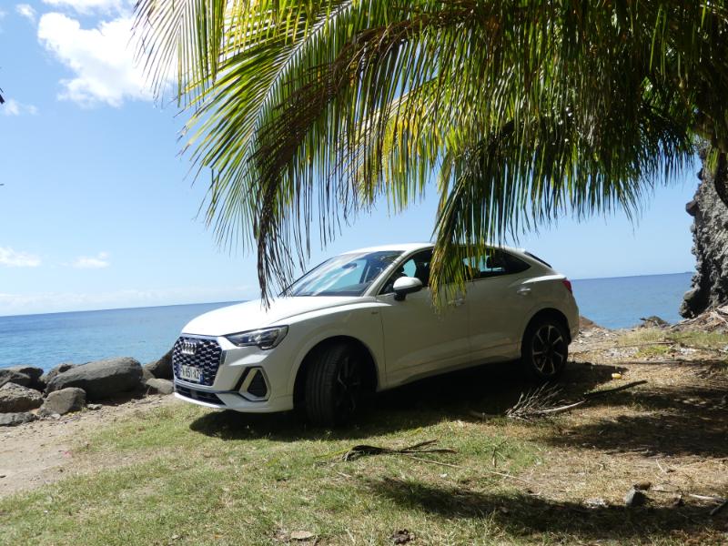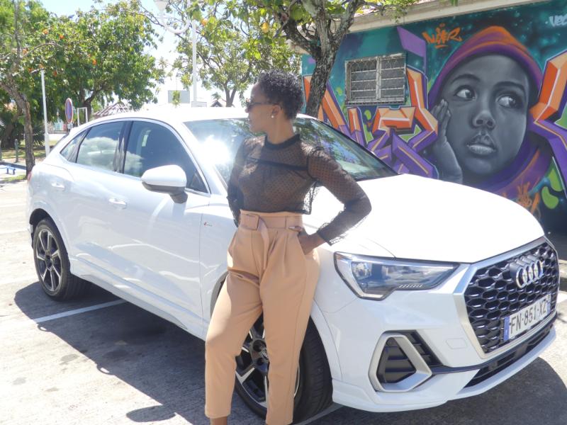 Prise en main ce matin chez AUDI Martinique du tout nouveau Q3 Sportback avec notre pilote féminin du jour @Dominoozxo ! Avant de parler de la très belle et ultra branchée influenceuse sur notre île rappelons que l’AUDI Q3 revête sûrement sa tenue préférée ‘Sportback’ celle qui la transforme en SUV sportif, agressif et quasiment unique sur son segment… Pourtant rien n’est omis des primes qualités que l’on connaît du Q3 : confort, praticité et génétique tournée vers la famille… Départ de notre essai Q3 Sportback avec Dominique, j’ai plutôt pas mal de chance non ?