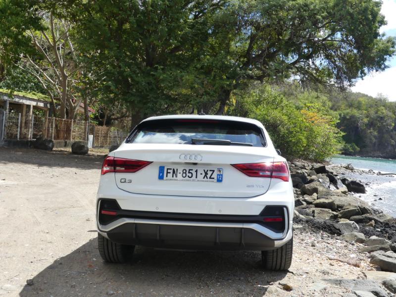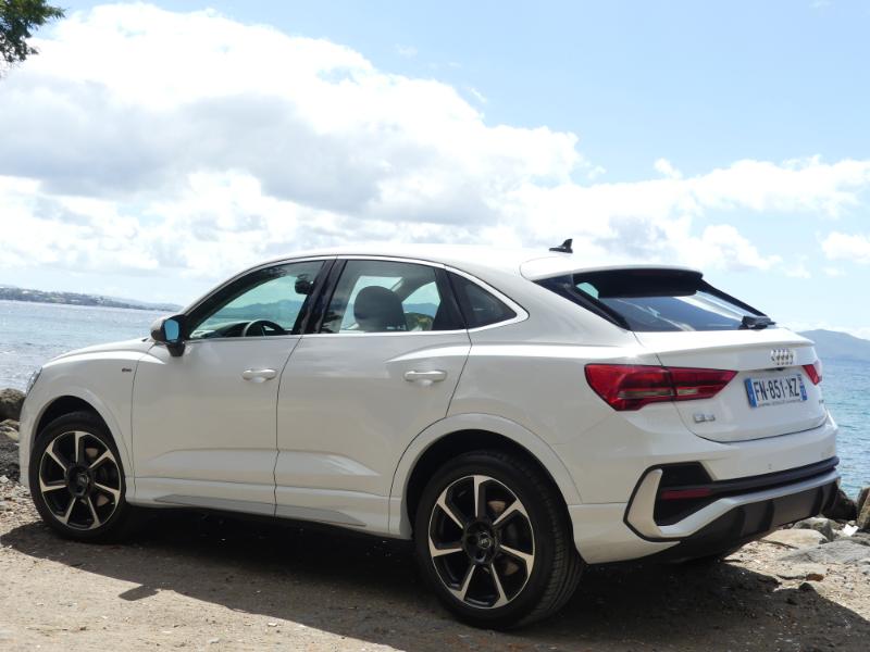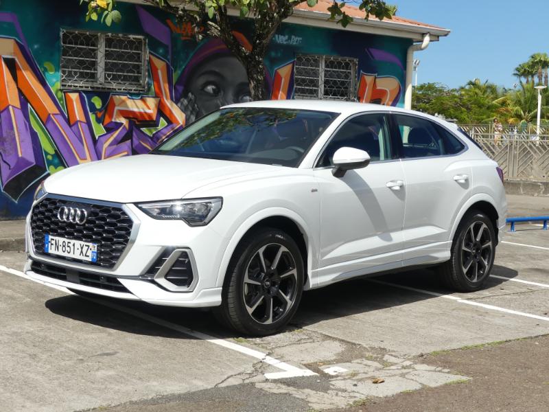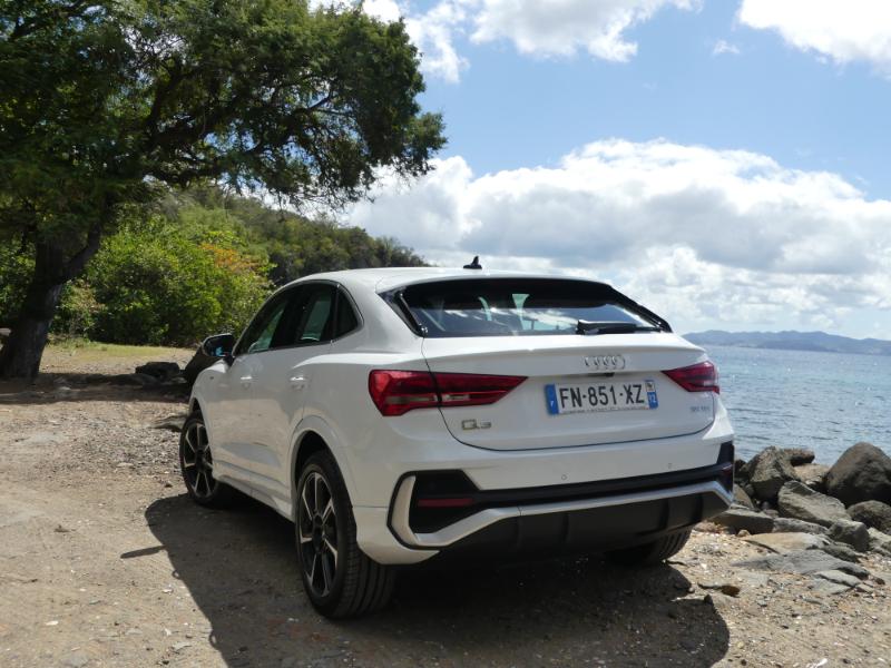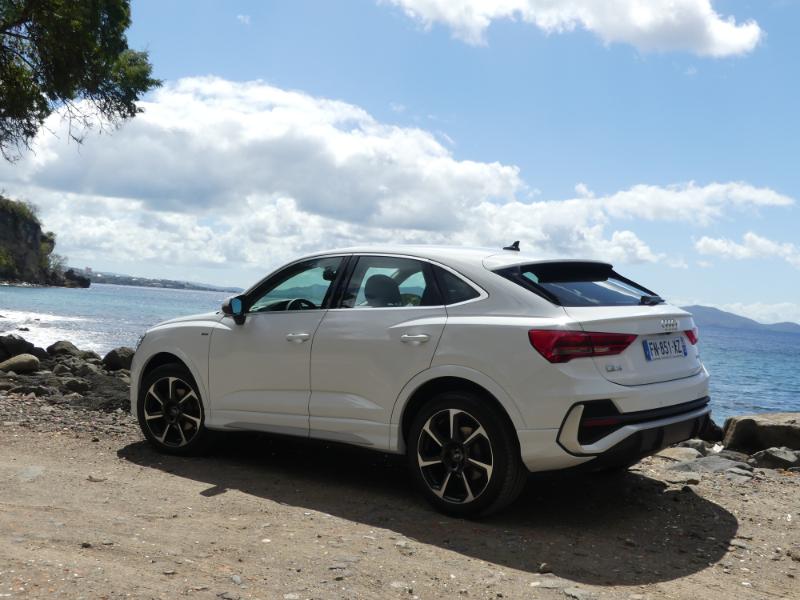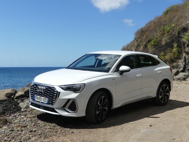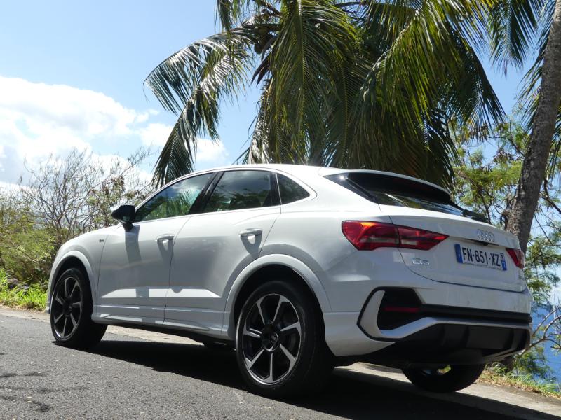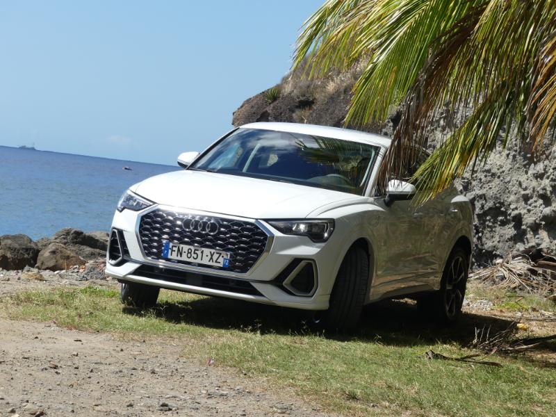 Pour monter en gamme et en puissaance choississez le moteur 2,0 litres quatre cylindres turbo essence de 231 chevaux est plutôt une bonne surprise : 7,3 s pour le 0 à 100 km/h (selon nos mesures), voilà qui est plutôt bien. Avec une telle accélération, le SUV coupé de la marque aux anneaux fait mieux qu’une Mini Cooper S de 192 ch, par exemple. Pour une comparaison plus « directe » avec des concurrents, sachez qu’il fait mieux que le Volvo XC40 T5 ou même qu’un Jaguar E-Pace P300. Ce dernier développe pourtant 300 chevaux mais il est beaucoup plus lourd. Ce Q3 Sportback 45 TFSI est parmi les plus performants du genre. Ajoutez à cela un sentiment de douceur générale, mais une sonorité sympathique et envoûtante en poussant dans les tours… Que demander de plus ? A vous d'un faire l'essai chez AUDI Martinique il est disponible !